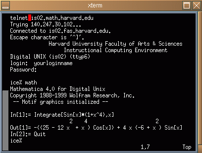 | 1) Telnet into fas. 2) Start Mathematica. 3) Type in Mathematica code. 4) Quit Mathematica. |