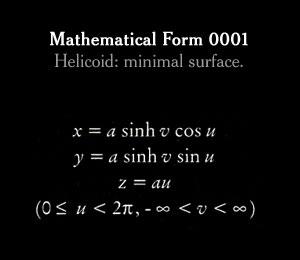 to reproduce the pictures using Mathematica. The source code can be found below. Citation NYT: "It's hard to imagine that these plaster forms, so starkly beautiful, were originally used to teach advanced students trigonometry. Called stereometric models, they were manufactured in turn-of-the-century Germany to help scholars grasp complex mathematical formulas. Last year, the Japanese photographer Hiroshi Sugimoto shot each object, the tallest of which is less than a foot high, from below at close range so that they appear monumental. His series of photographs, 'Mathematical Forms', reimagine these scientific models as things of wonder. They embody Sugimoto's belief that art is possible even without artistic intention." Hiroshi Sugimoto is a Japanese born American Photographer. His commitment to taking photographs that combine the conceptual, the sensual and the technical has made him a rising contemporary art star. |