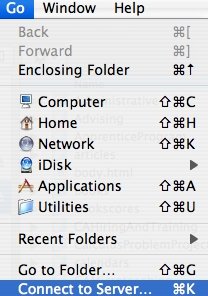 choose Go-> Connect to Server: