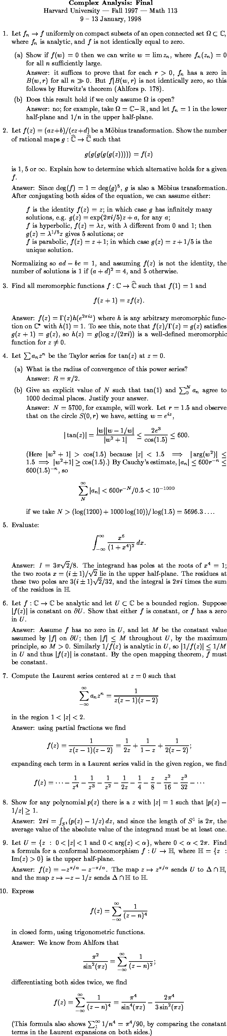 Math 113 - Harvard University - Fall 1997