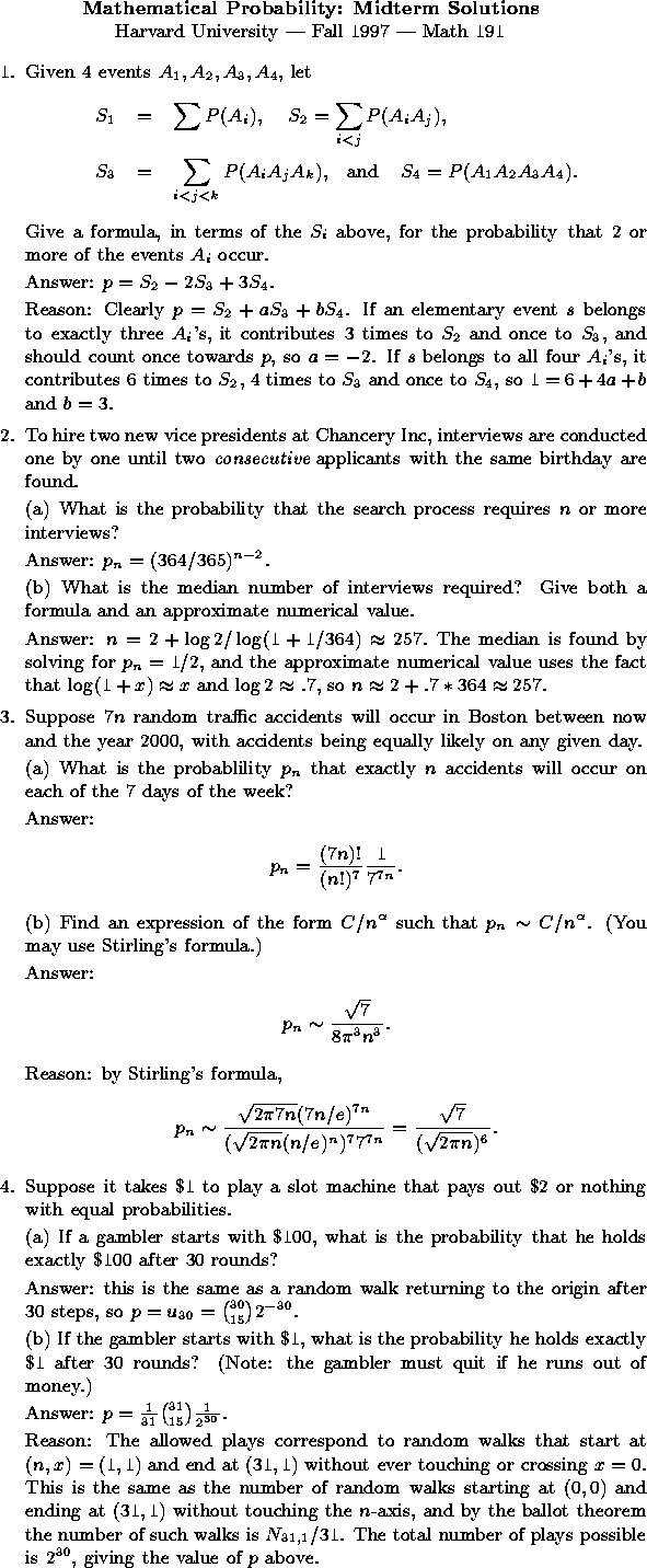Mathematical Probability: Midterm