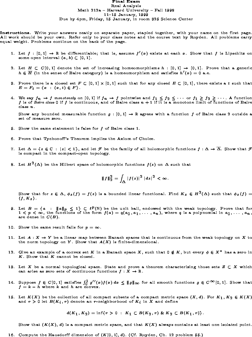 Math 212a - Harvard University - Fall 1998