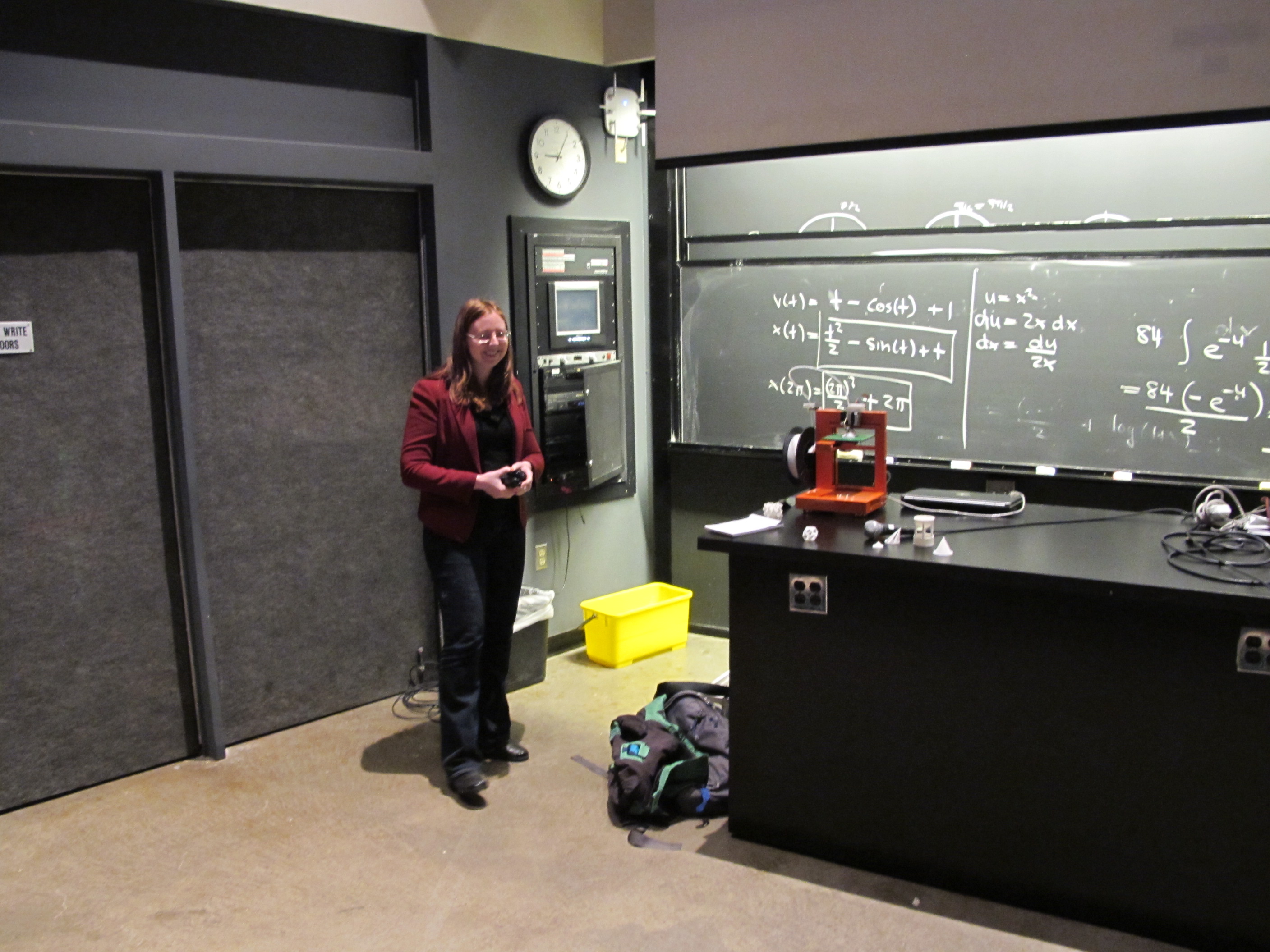 Liz presented the printer during a single variable calculus review lecture. Some movie clips. Here are some photos from May 3, 2012:![]() In Lecture Hall D on May 3, 2012 |