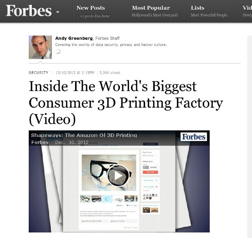 In October, 3D-printing startup Shapeways opened its New York production