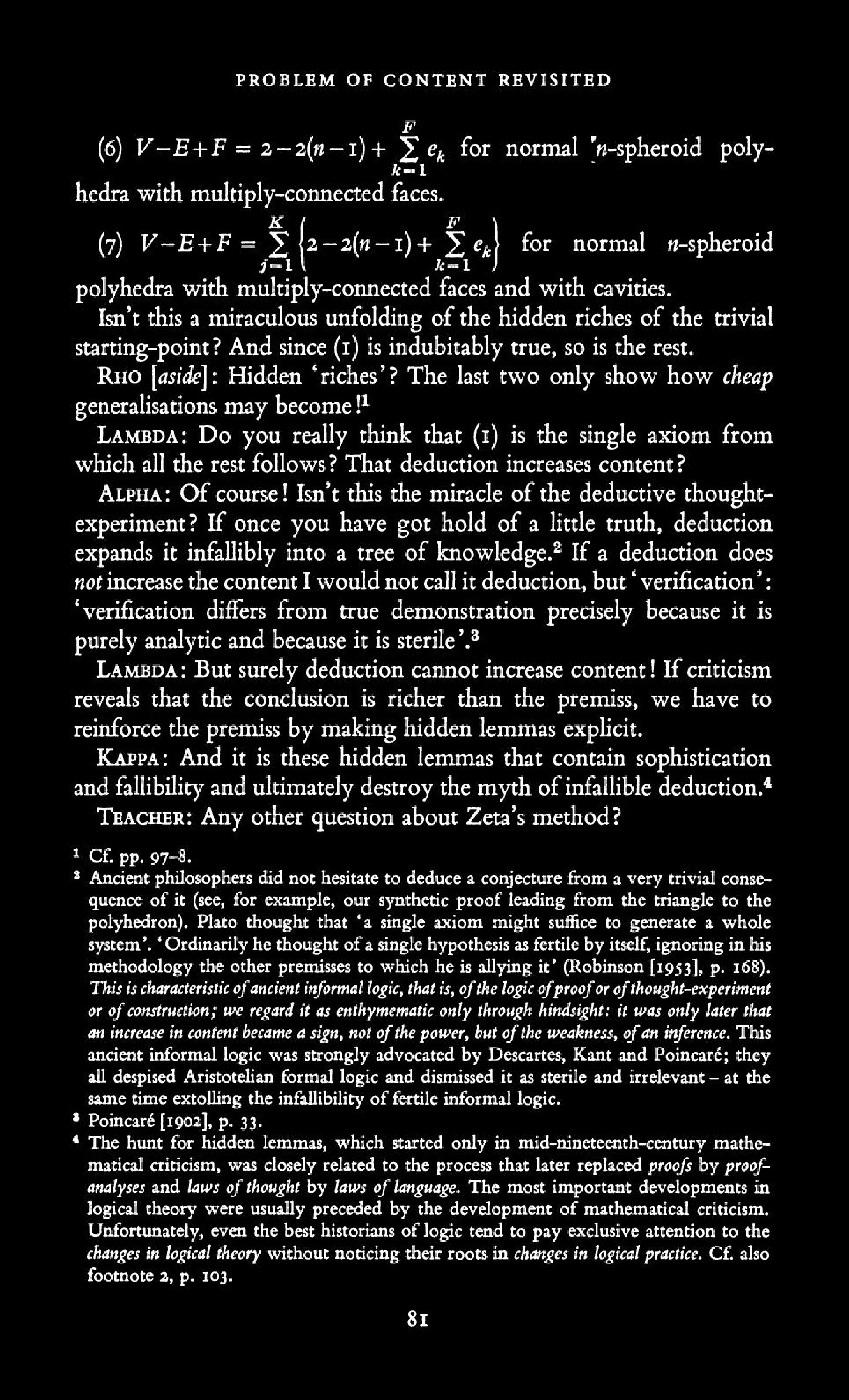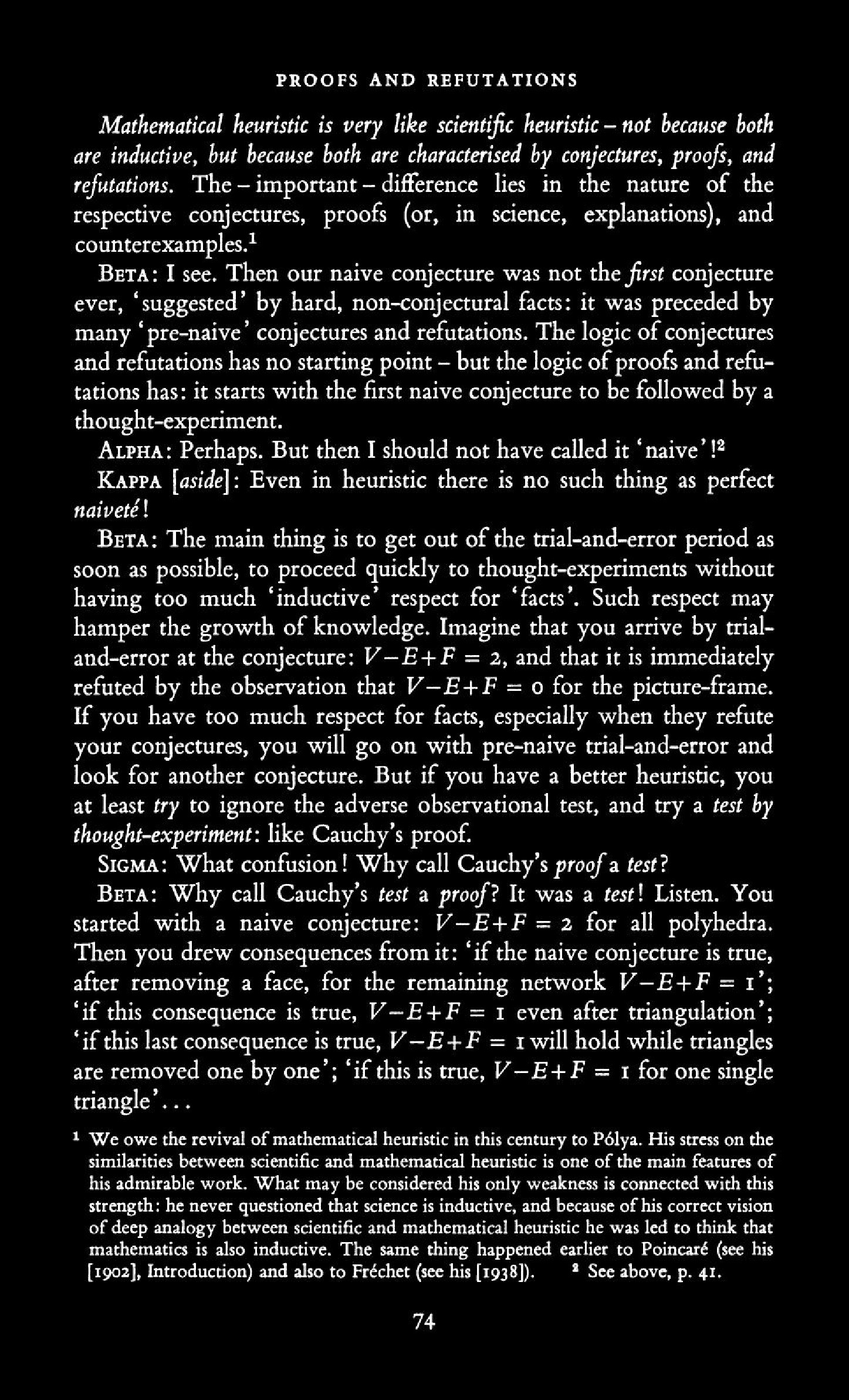 from Imre Lakatos: Proofs and Refutations, The Logic of Mathematical Disovery