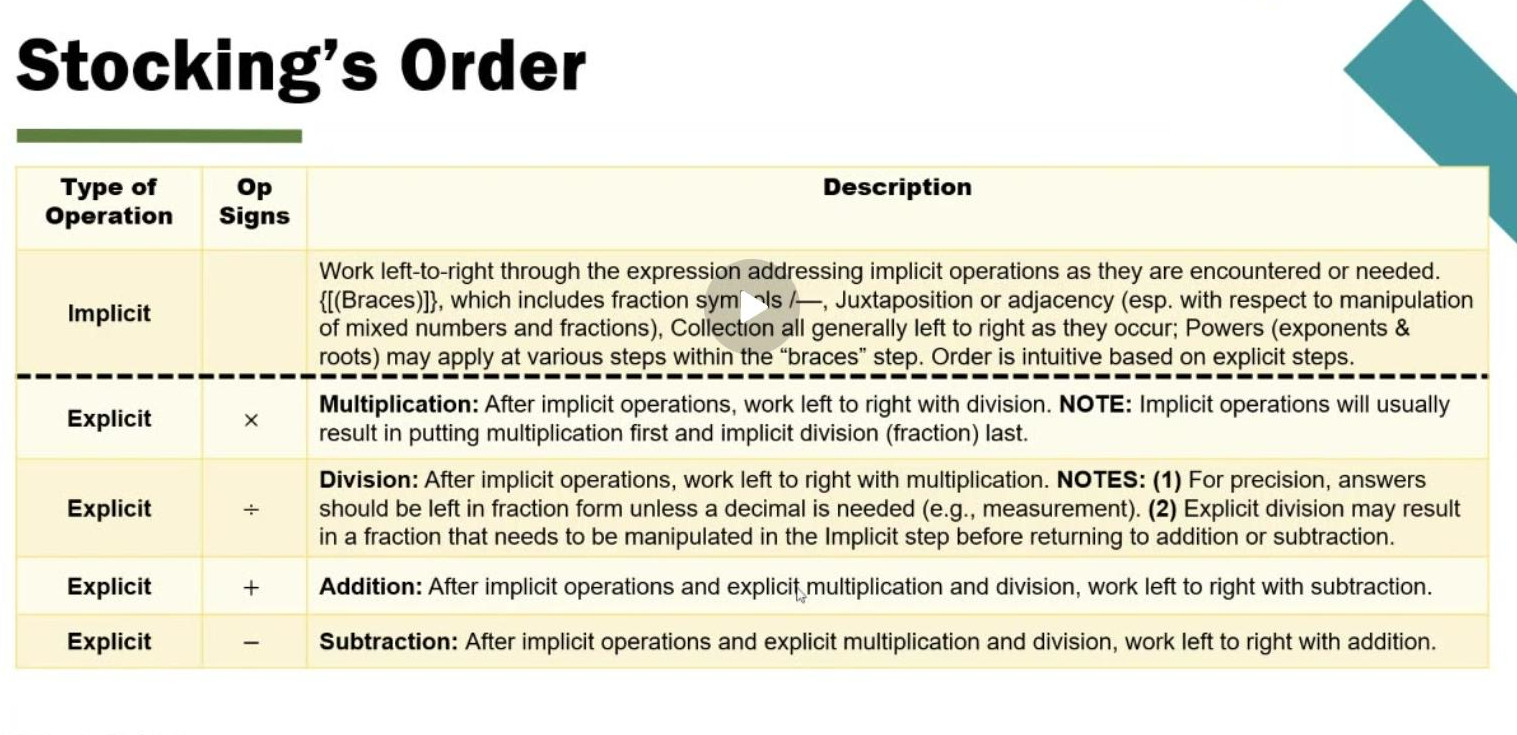 I read your blog on programming issues as to MD or DM. The problem is they all conflict with the first law of Algebra. Simplify then REMOVE Parentheses. These conventions all violate that by saying only simplify brackets INSIDE. So at first I like you said AMBIGUOUS to 6/2(1+2) 1 or 9 However, I took a nap, astral surfed over to old Euclid and he laughed. Proof 1 and 9. 6/x=1 or 6/x=9 When x=2(1+2) 2(1+2)=2(3)=6 6/6=1 So not teaching students to remove parentheses in new math is conflicting with first law of algebra. All these acronym conventions need to be corrected to reconcile with 1st law of algebra. So do you agree the new math conventions need to agree with Euclids first rule of Algebra? I think it does.Here was my answer: