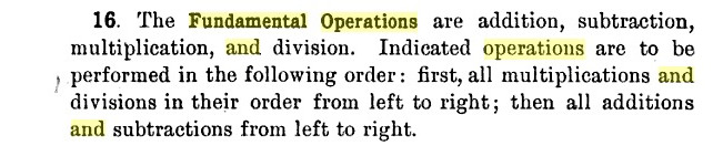 also taught students to do all multiplications and then all divisions, but most, such as this 1907 high-school algebra