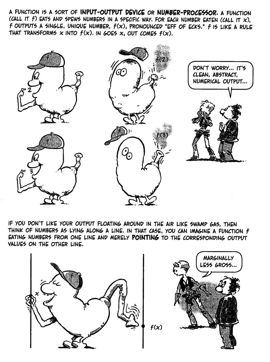 One of my personal heroes is Larry Gonick. His cartoon guides to various topics are simply fantastic. They are thoughtful and funny, sometimes a bit risky and not always politically correct. (Click on the picture to the right to see the page larger. It is from the Book "Cartoon guide to calculus", 2012). The ones I know (like calculus, stats, economics, physics) are actually quite decent textbooks, containing more new ideas than your typical textbook. Indeed, your typical textbook writer is no fun. Gonick studied mathematics at Harvard, graduating in 1967. A couple of years ago he gave a talk at Harvard which was very well attended. It was a wonderful talk but it did not start well with the audience as he mentioned that when he was here, ``Harvard had been toxic" with respect to humor. I can understand what he meant since during the last decade I have been here, there has been a decrease in appreciation for humor. [ Update: One must see however a lot of good things: the science center plazza for example have added a lot of fun both in winter: example 1 example 2 or summer example. The tide has definitely changed also on the humor side: September 2019: IG nobel prize and October 2019: Sesame streets come to Harvard ]. Of course, one must understand why: the members of an institution (and universities in particular) constantly walk through a mine field. The emergence of social media in the last 10 years or so increased the risks. Relatively little things like a wrong joke can force officials to take drastic steps. We are more sensitive to political correctness and diversity and that is a very good thing, but it also comes with a price: if you look at commencement speeches from 15 years ago and commencement speeches from today, then the later are funeral speeches. In short: making jokes has become more and more difficult.