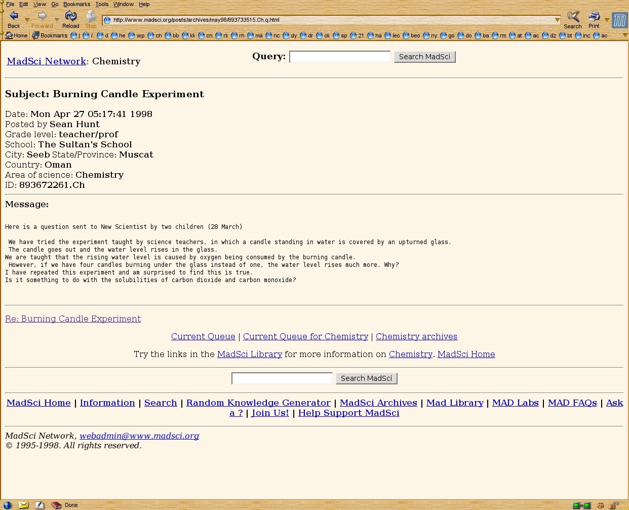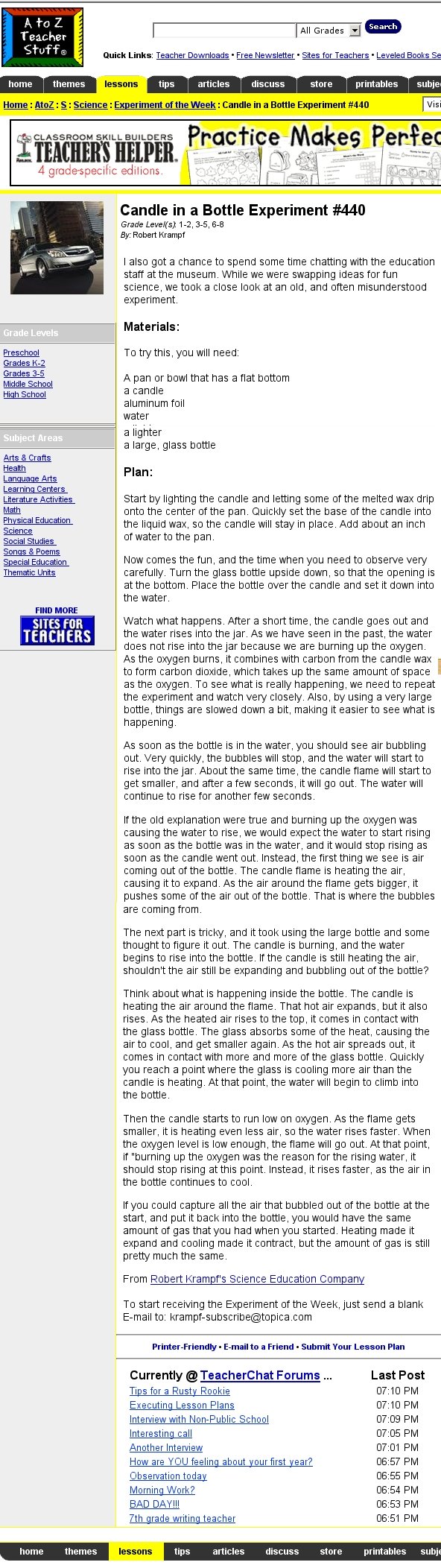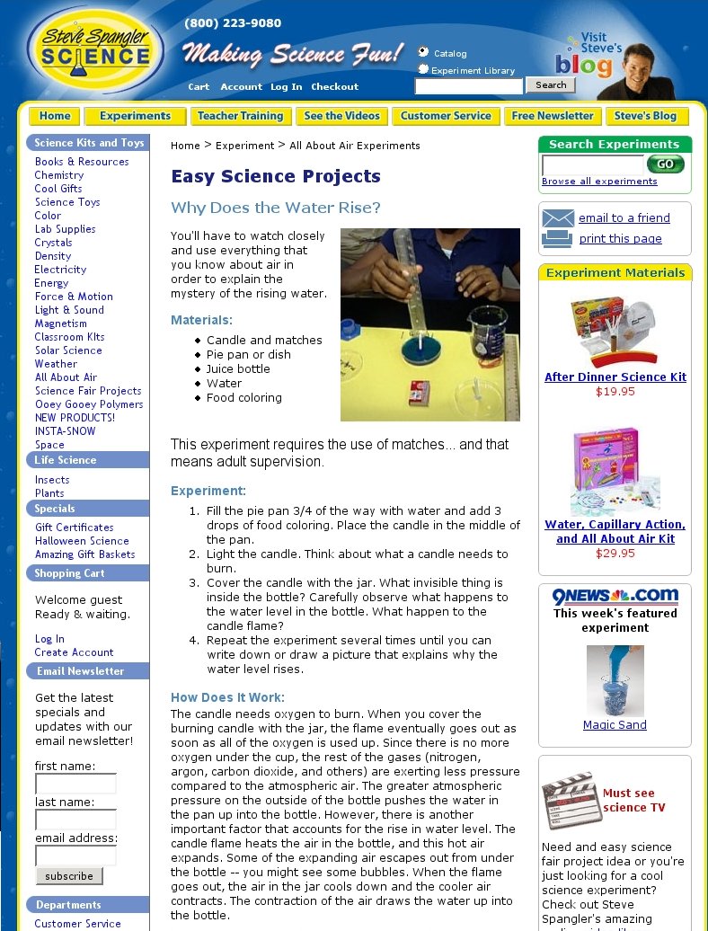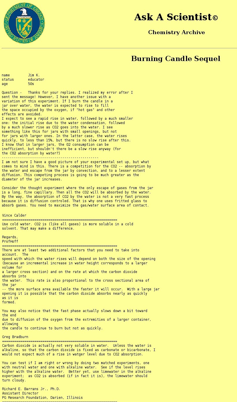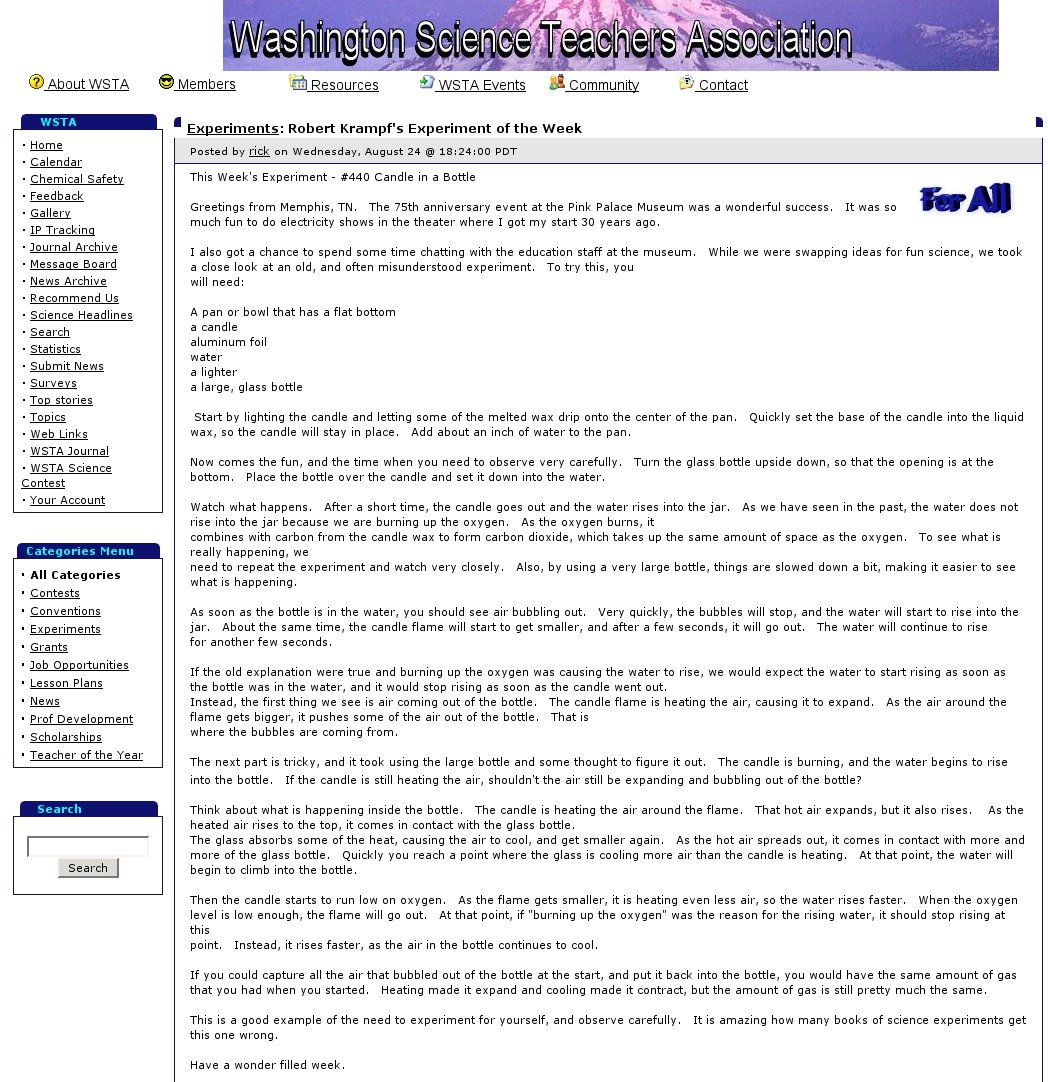 These were the first google hits while searching for "experiment candle water":