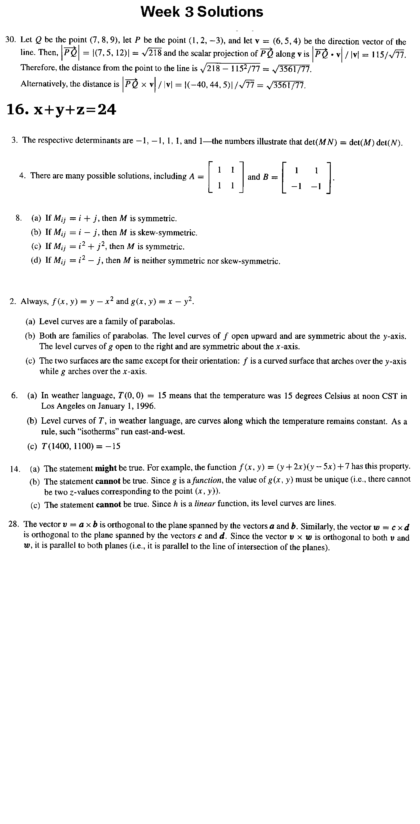 2) For each of the following, find values for the constants a,b which make the given vector