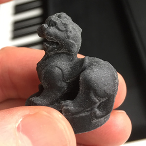 cleaned up a bit with meshlab, then imported into Mathematica: here are the 3D files: Chimera PLY| Texture 1 JPG| Texture 2 JPG| Texture 3 JPG | ZIP file with OBJ, MTL and Textures| Chimera STL (for 3D printing)| Preview the STL file using WebGL| In Shapeways. The Chimera was used as a tomb guardian in China. It rested on top of a tall pillar leading to the tomb of a member of one of the ruling families at Nanjing. It was created during the years 475-524 and is so 1500 years old. Update: January 14, 2016: First the picture from the museum, then a printout from Shapeways and finally a much simplified mesh colored: click for a larger picture.