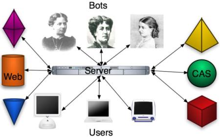 to chat about calculus and related issues. One of the primary goal of the project is to learn more about teaching and learning of mathematics. Teaching mathematics to "Sofia" will widen our horizon on how teaching and learning works in the classroom. While the expectations in AI technology are currently at a low - the expectations of the early pioneers have proven to be much too optimistic, we hope to have available a chatter bot, which is also useful: as an interface to computer algebra systems, to look up mathematical definitions or to assist in simple calculus problems. Part of the grant allows us to host Sofia on a decent hardware. The rest is for student saleries. The project started in the fall 2003. While we focus on calculus, Sofia should know also as much related material as possible. |