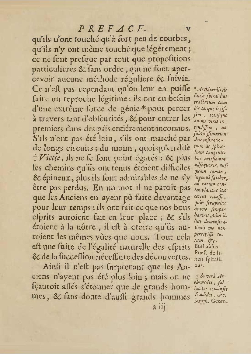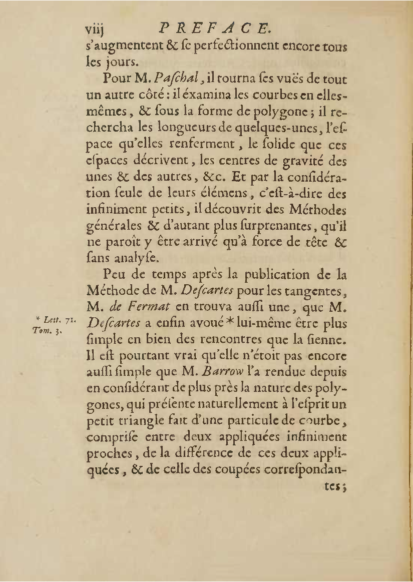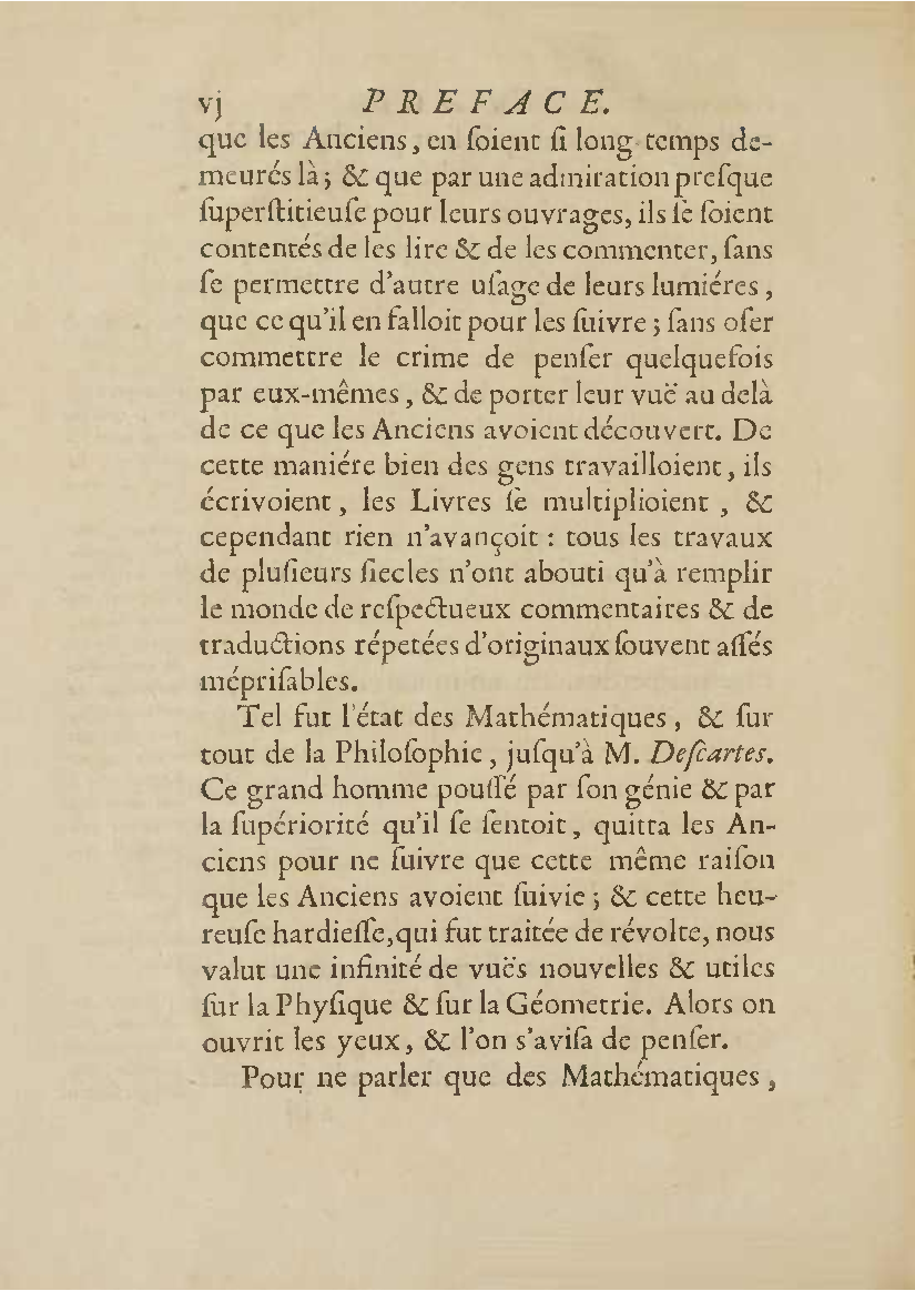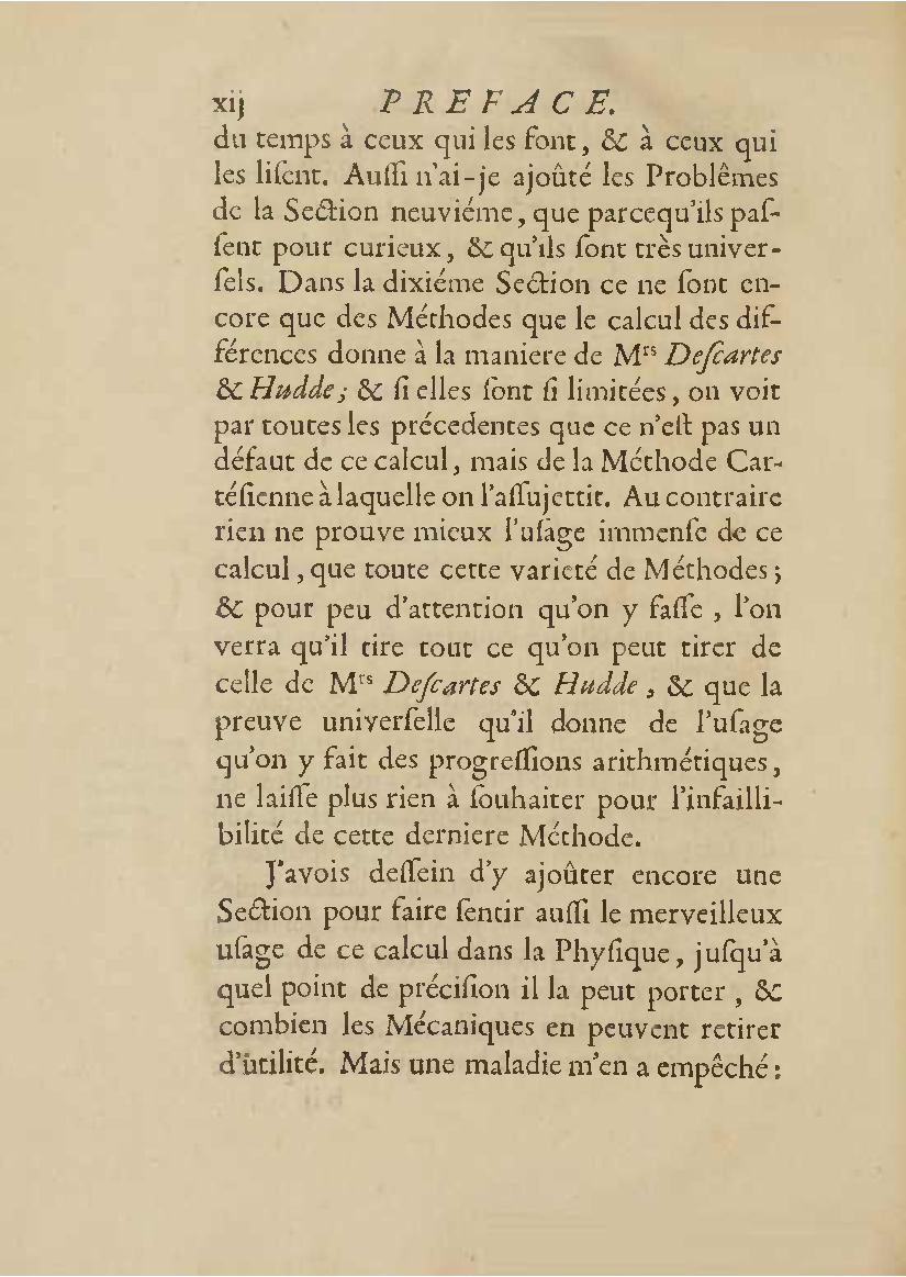Analyse des infiniment petits, pour l'intelligence des lignes courbes Par Mr le Marquis de L'Hospital. L'analyse qu'on explique dans cet ouvrage, suppose la commune; mais elle en effort differente. L'analyse ordinaire ne traite que des grandeurs finies : celle-ci penetre jusque dans l'infini meme. Elle compare les differences infiniment petites des grandeurs finies; uelle decouvre les rapports de ces differences et par la elle fait connoitre ceux des grandeurs finies, qui comparers avec ccs infinimeurs petits font comme aucanc d'infinis. On peut meme dire que dire que cette Analyse s'etend au-dela de l'infini: car elle ne se borne pas aux differences infiniment pecites ; mais elle decouvre les rapporcts des differences de ces differences, ceux encore des differences troisiemes, quatriemes et ainsi de suite, sans trouver jamais de terme qui qui puisse arreter. De forte qu elle n'embrasse pas seulement l'infini; mais l'infini de l'infini, ou donc infinite d'infinis. PDF (I removed some empty pages from the source). |