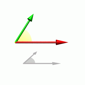 The dot product v . w = |v| |w| cos(phi) (rendered in Povray)