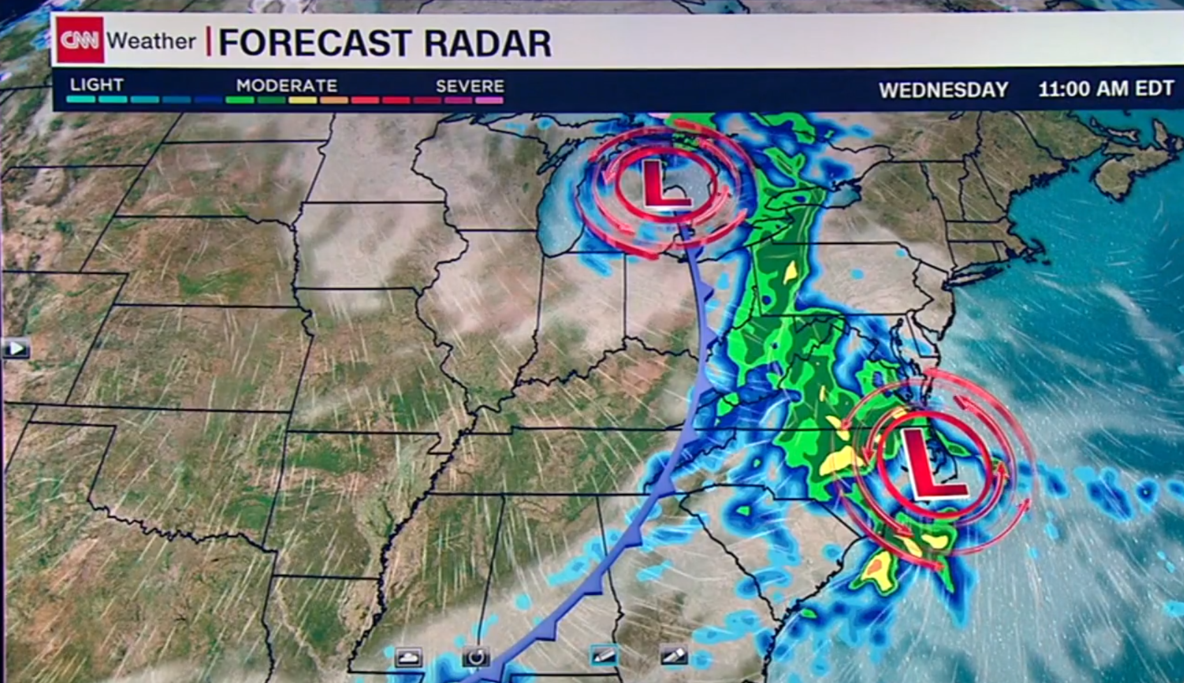 Weather forecast always wants to be dramatic. These days (October 16, 2019), the Bomb Cyclone is in the news. It is also called a ``weather bomb" or Super storm. There is a lot of multi-variable calculus to be seen. The pressure pictures are contour maps. The wind velocity pictures show vector fields.