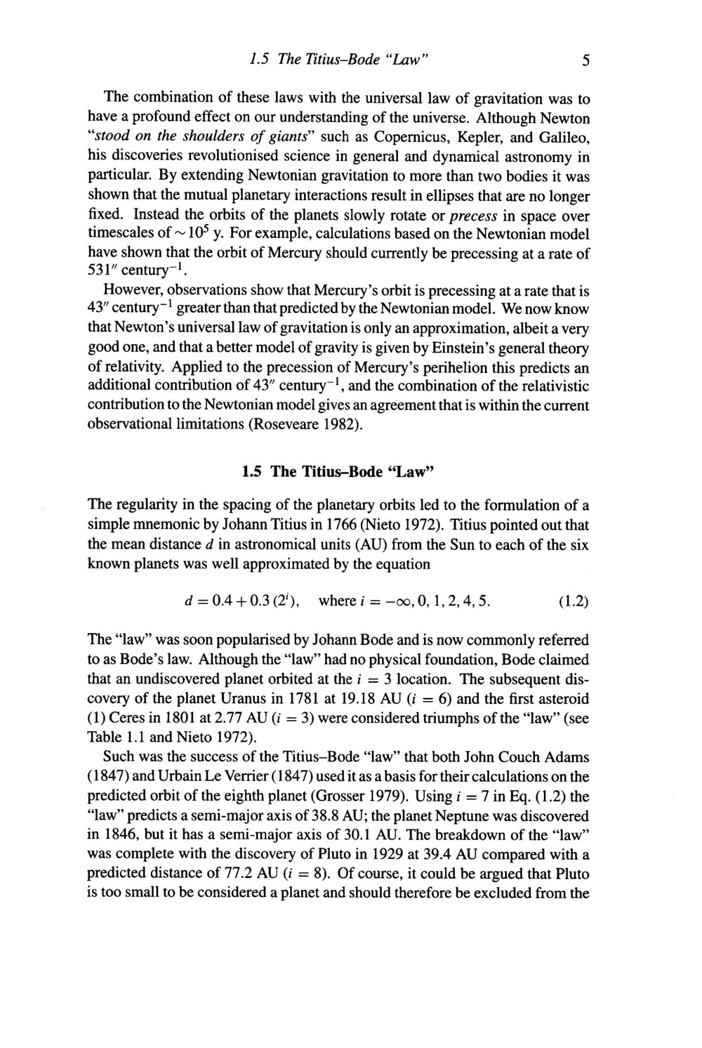 the Titius-Brade Law: