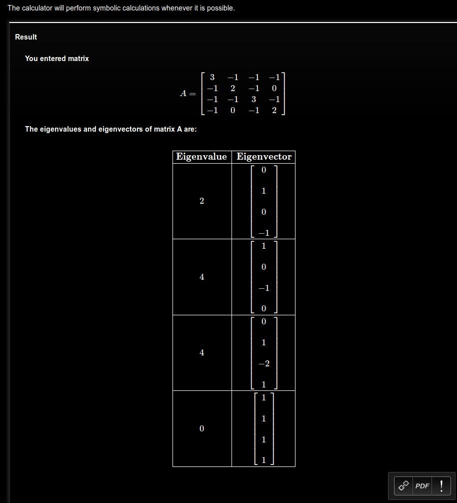 calculator to check on the eigenvectors of the matrix