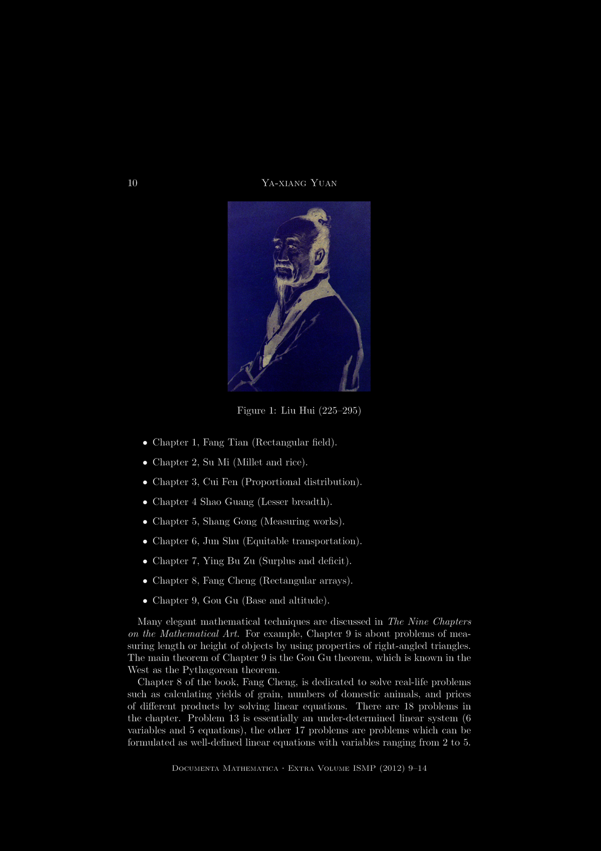 Figure 1: Liu Hui 225-295, edited and published the Nine Chapters