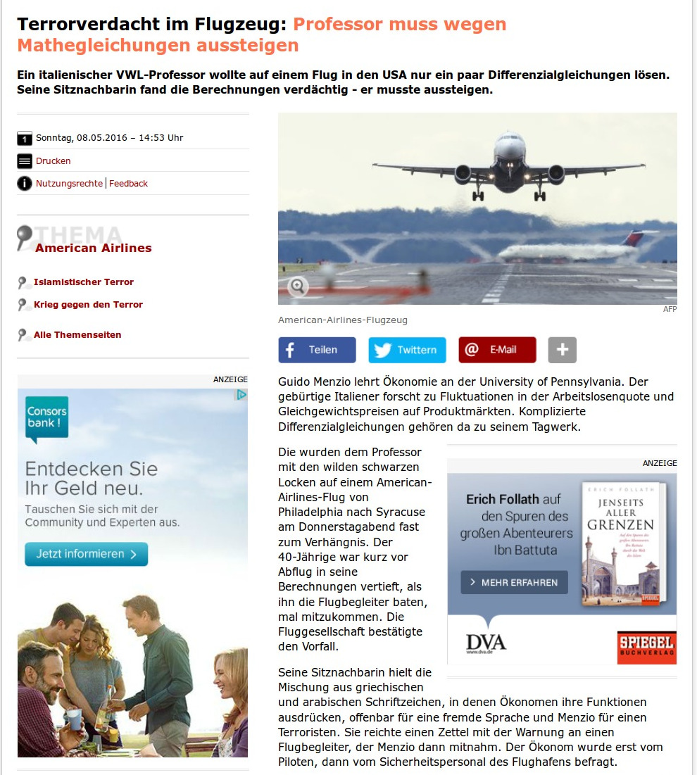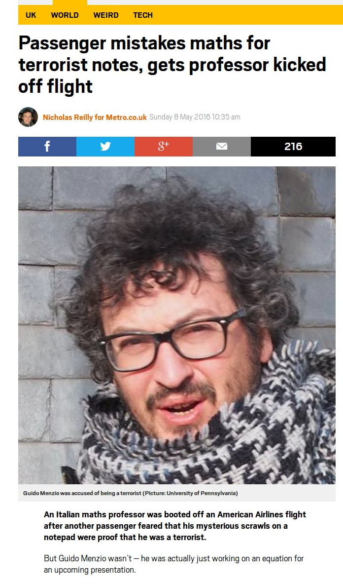 the math equations to be "terrorist code". The flight was delayed. So,