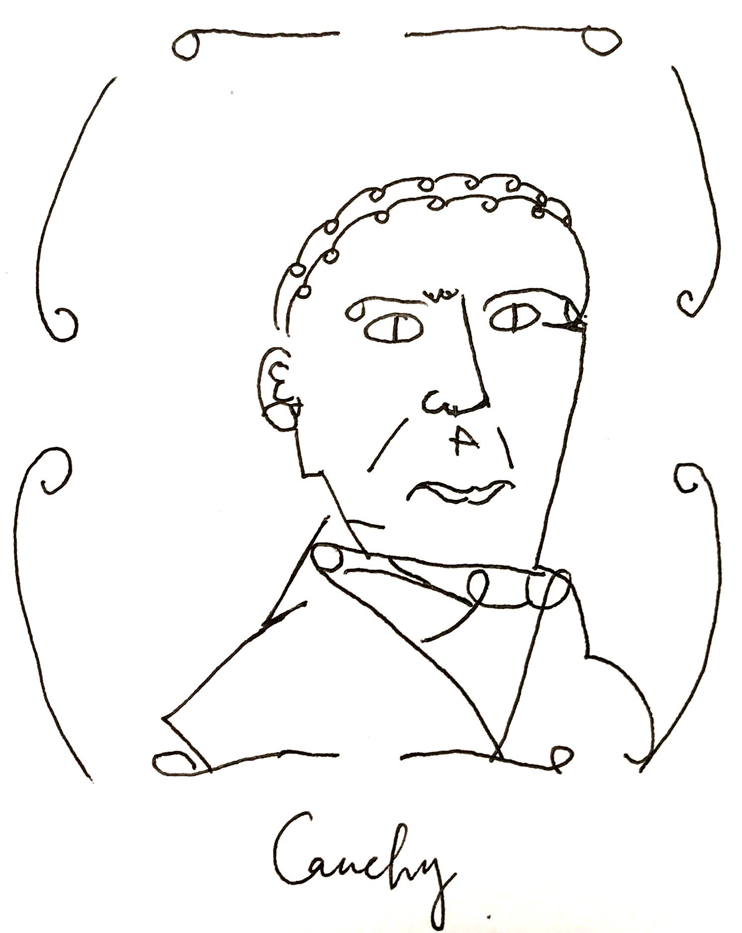 In one of the homework, we saw a portrait of Cauchy. We don't know from which student it is. If you have done it, please let us know (and if you prefer to remain anonymous, still fine, we will not post the name if unwanted). Until then, it is just an unknown artist.