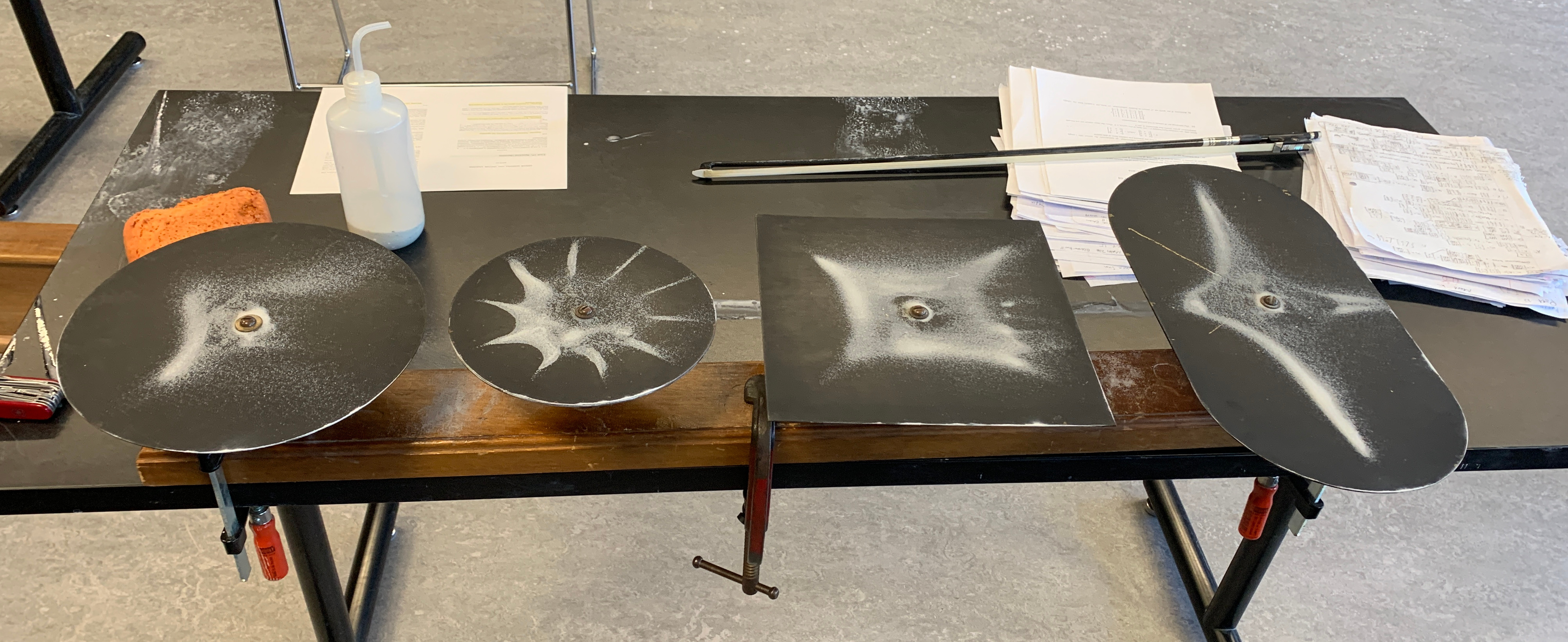 Class of Thursday, March 7, 2019: Click for larger picture. Thanks to the Harvard Prep room for borrowing out the Chladni plates.