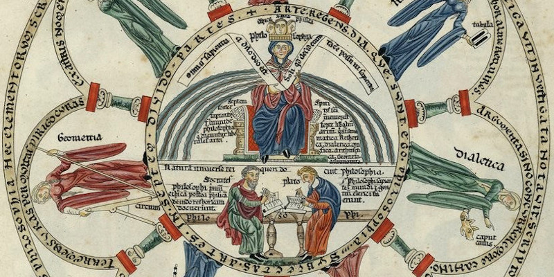 The "Garden of Delights" or Harrad of Landsberg shows the seven liberal arts and sciences: |