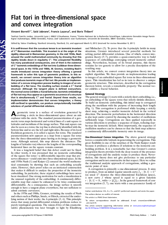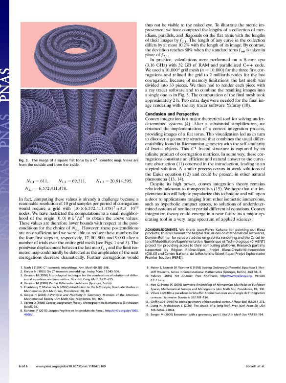 A flat torus can be embedded in Euclidean space in such a way that the resulting surface is isometric to a flat torus. The resulting surface is however not twice differentiable. It is a fractal.