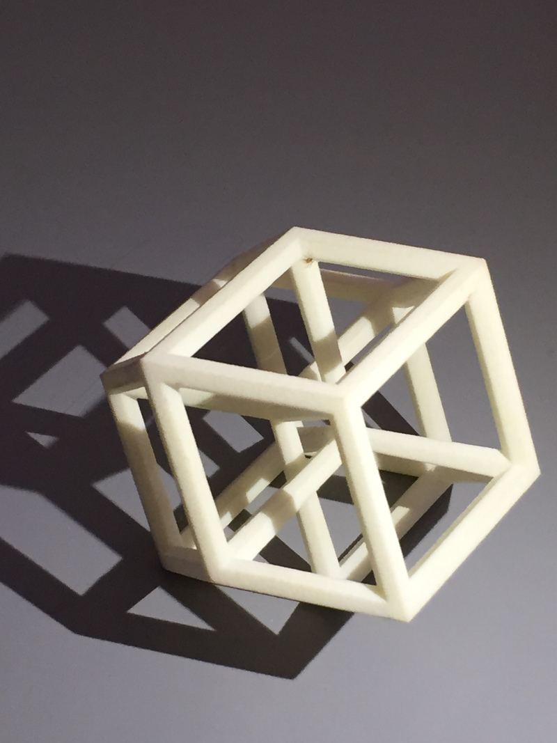 Having brought a tesseract to lecture, Mark, one of the students noticed a creature lost in 4D space. Here are pictures: