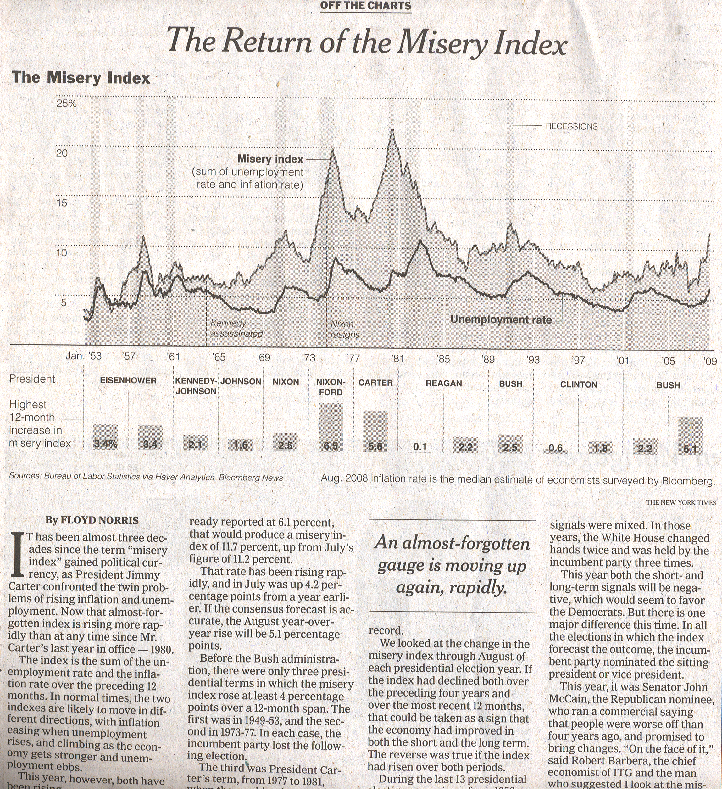 misery index (the sum of the unemployment and inflation rate), we have