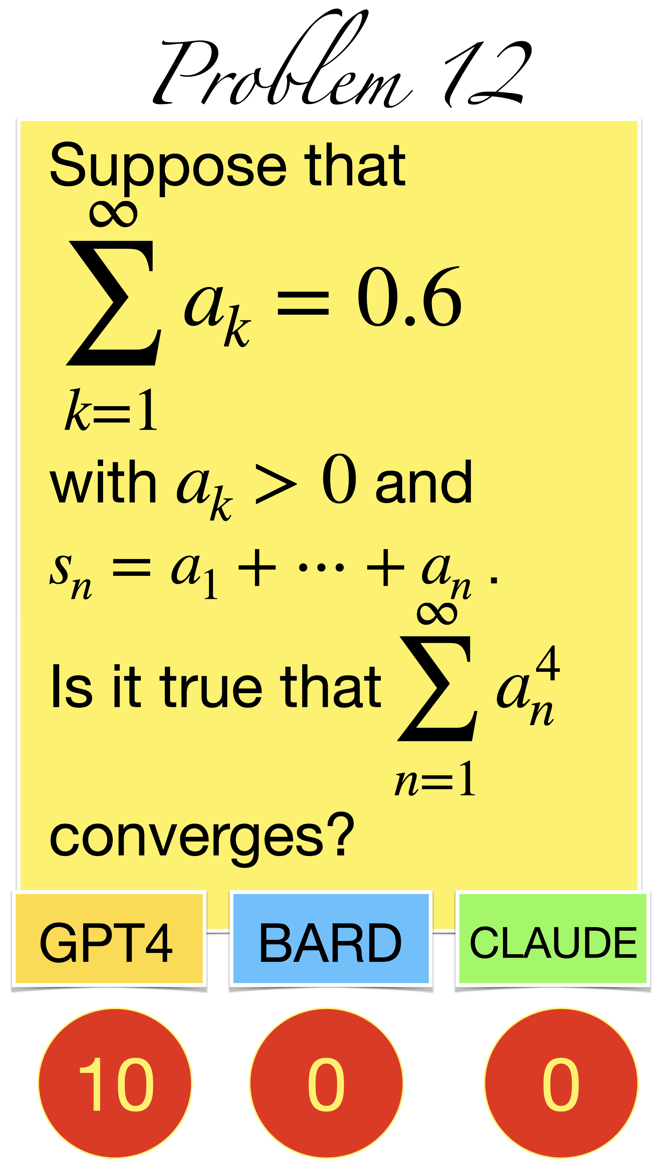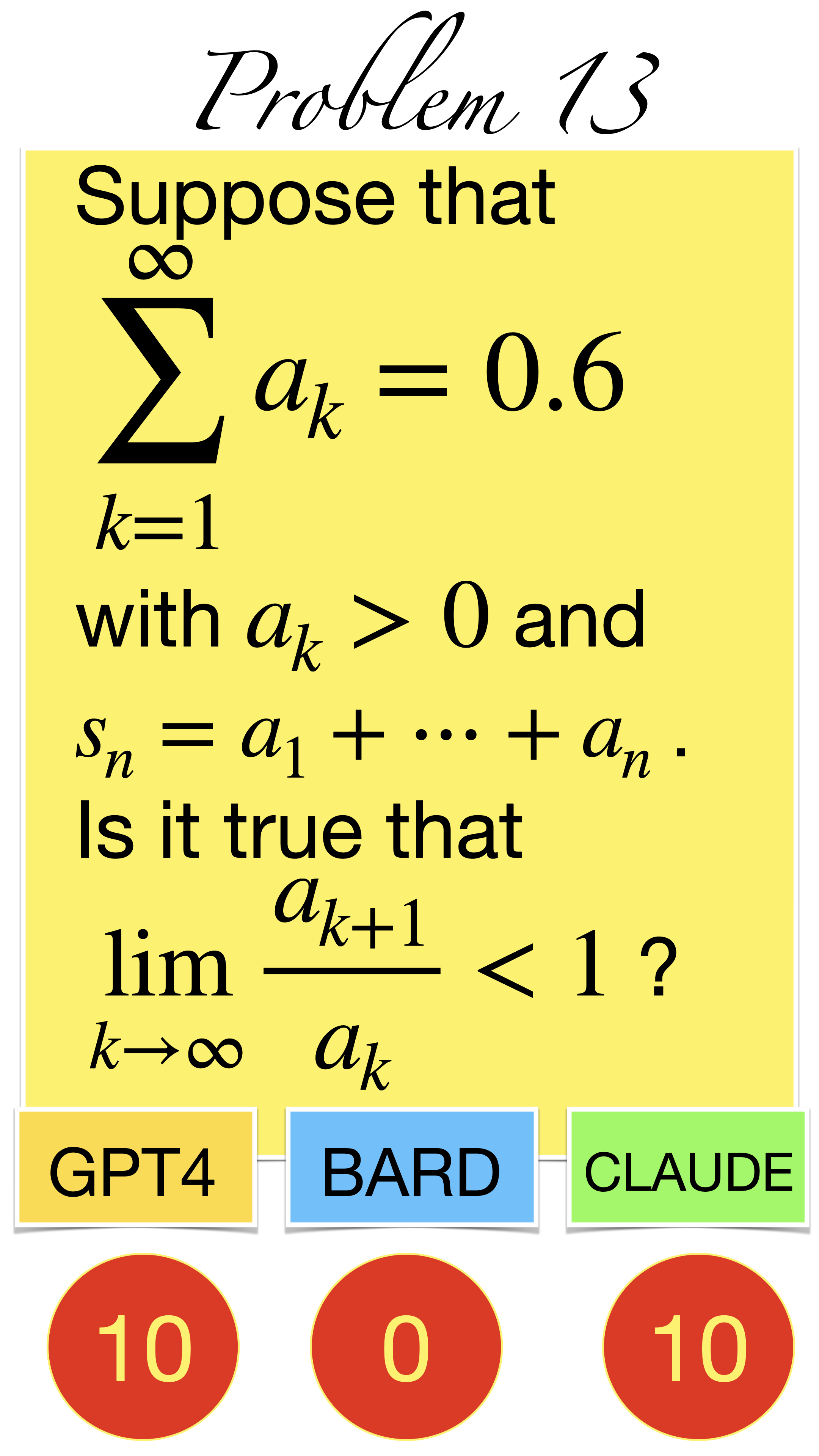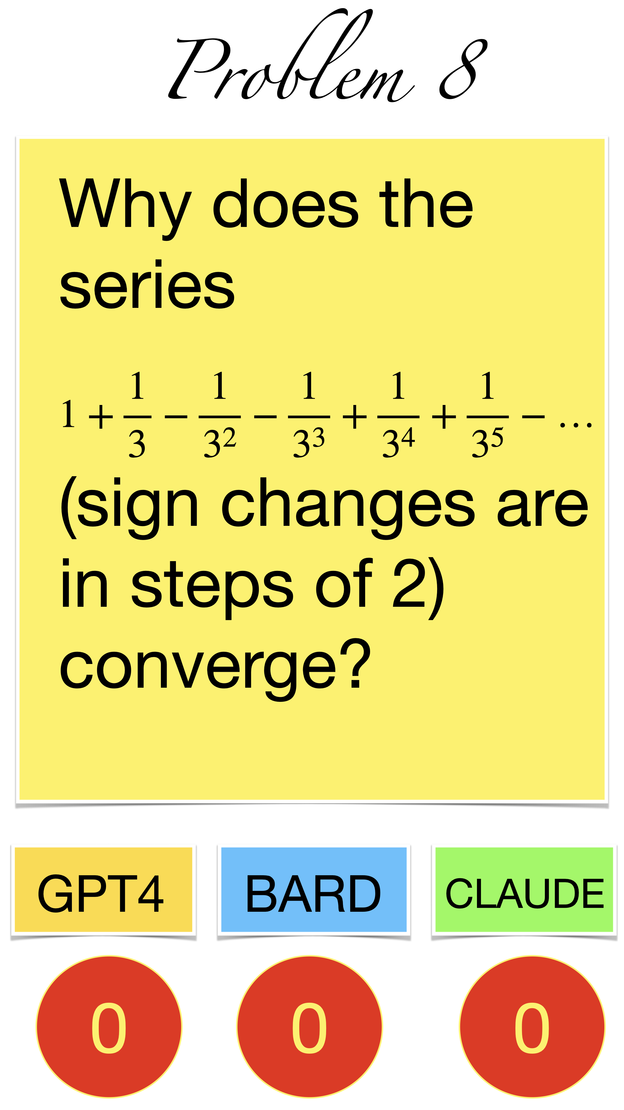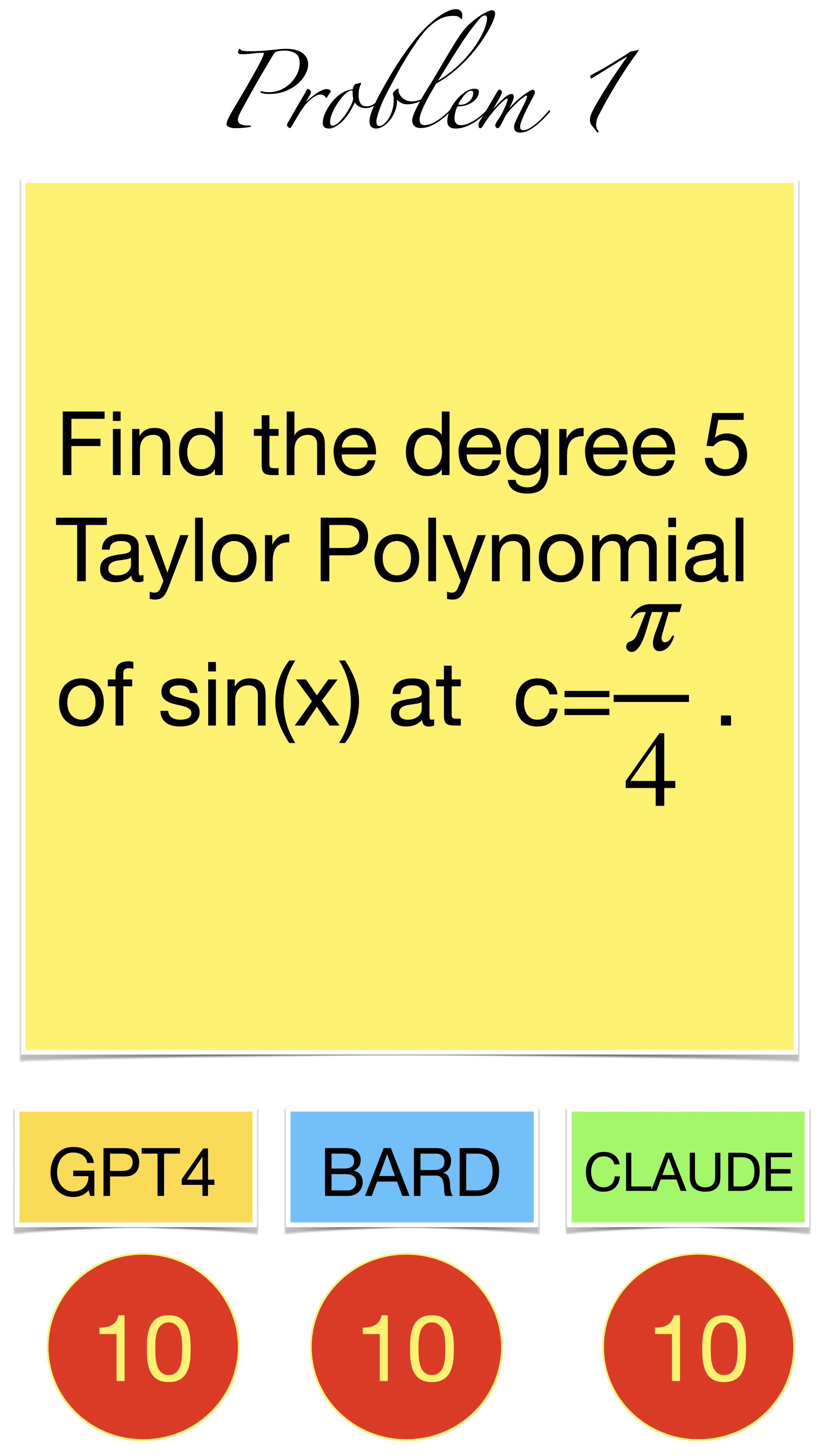 | Here are the pictures of the 1 minute short done before the second midterm in Math 1b. Three bots, GPT4, BARD, CLAUDE competed. I made a 35 frame slide show for that. The 1 minute short contains also the output captured from what the bots told. It can be inspected more closely here. Click onto a slide to see it large. |