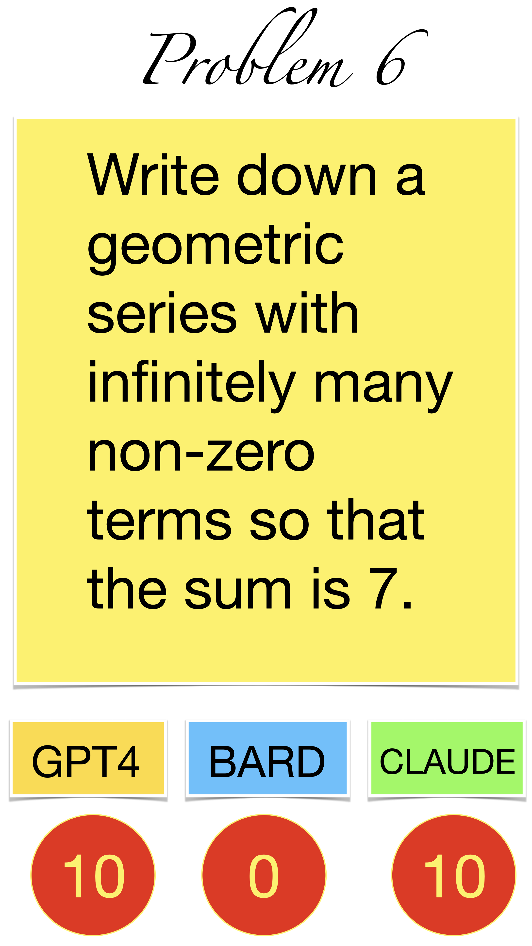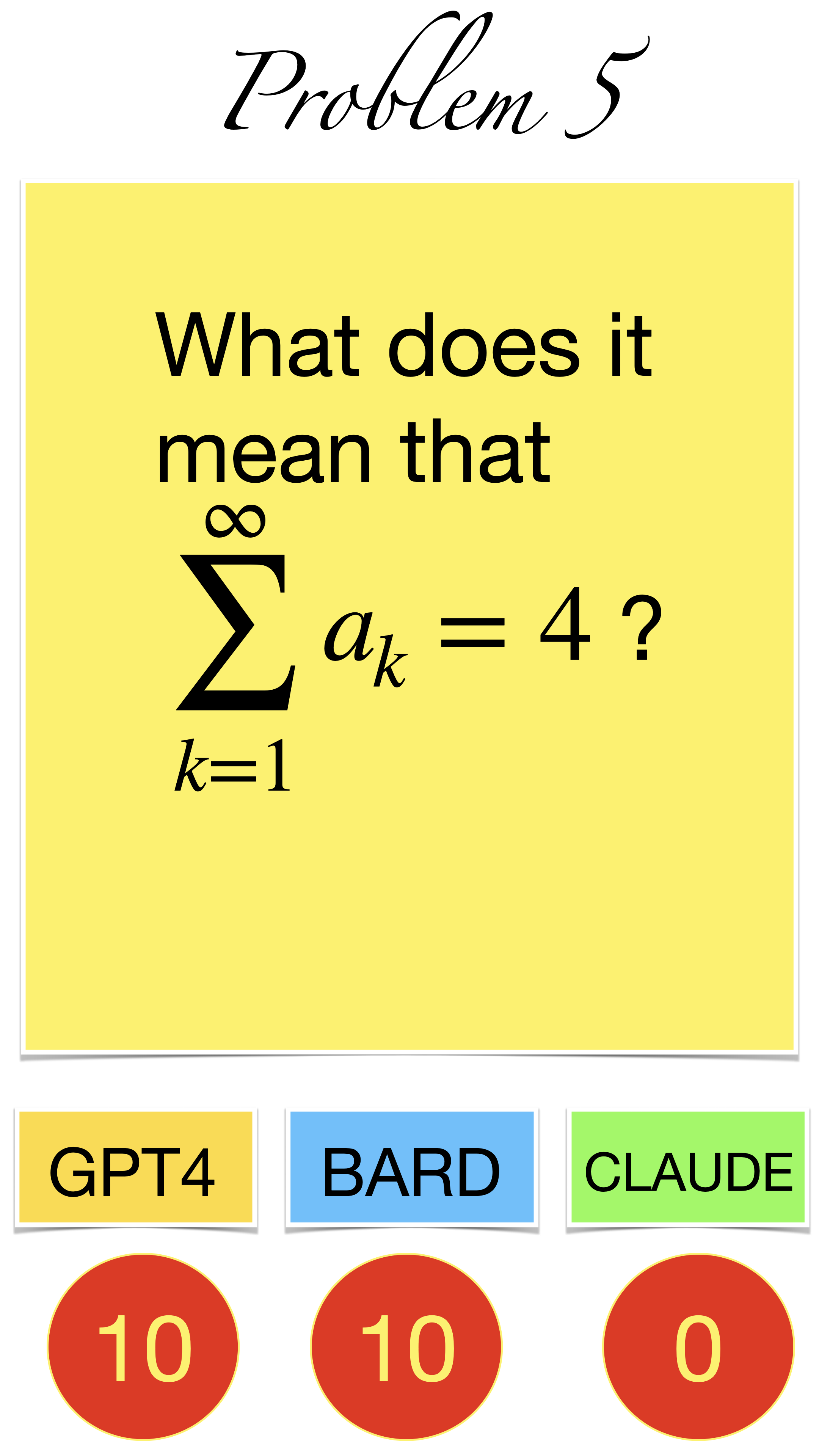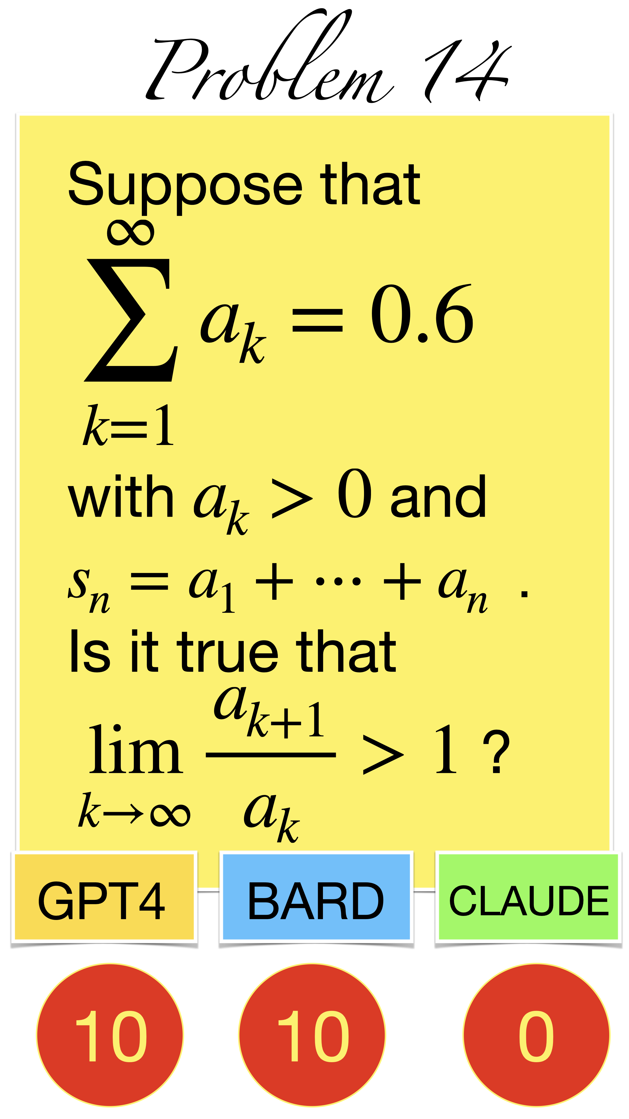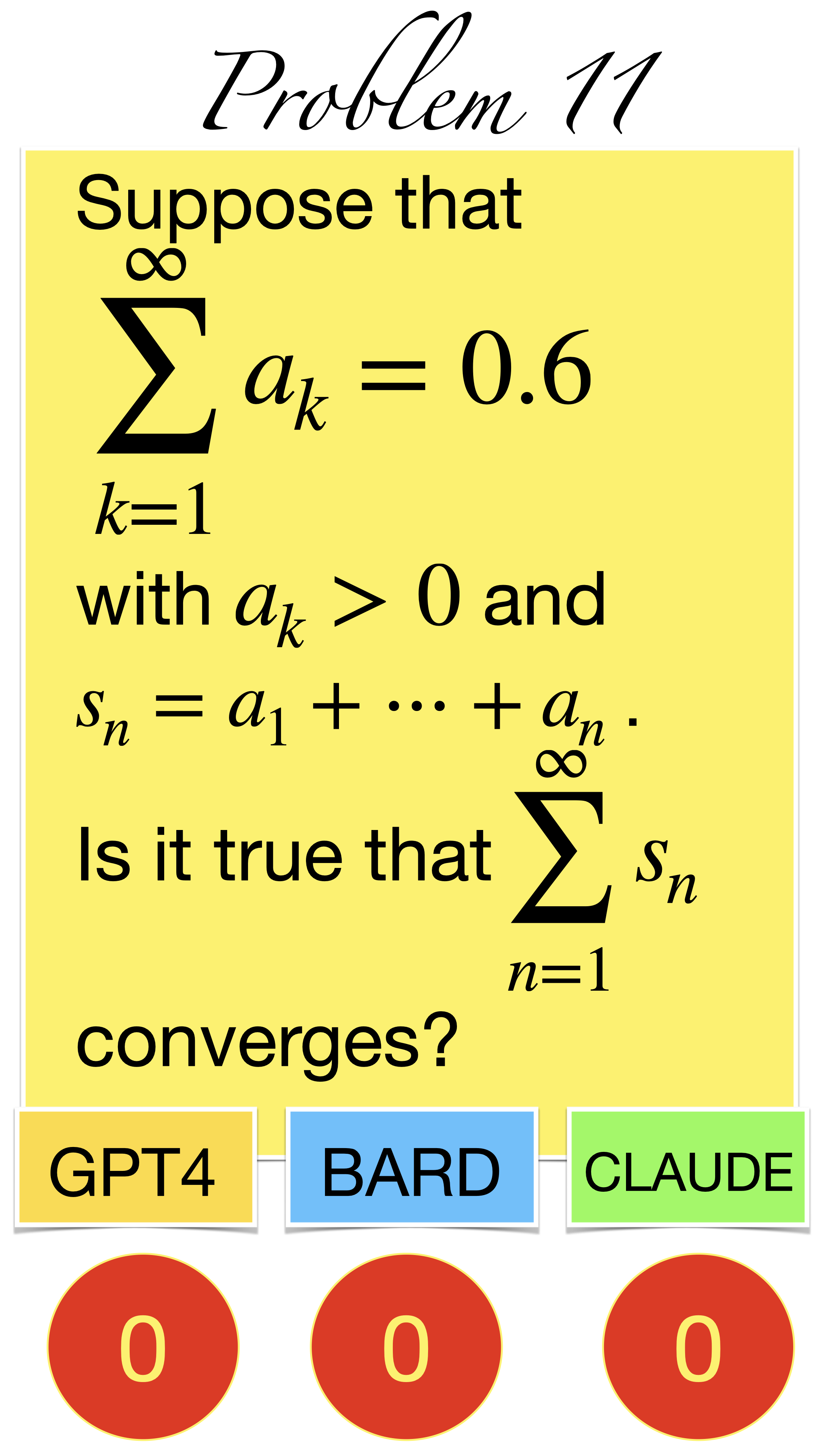 | Here are the pictures of the 1 minute short done before the second midterm in Math 1b. Three bots, GPT4, BARD, CLAUDE competed. I made a 35 frame slide show for that. The 1 minute short contains also the output captured from what the bots told. It can be inspected more closely here. Click onto a slide to see it large. |
