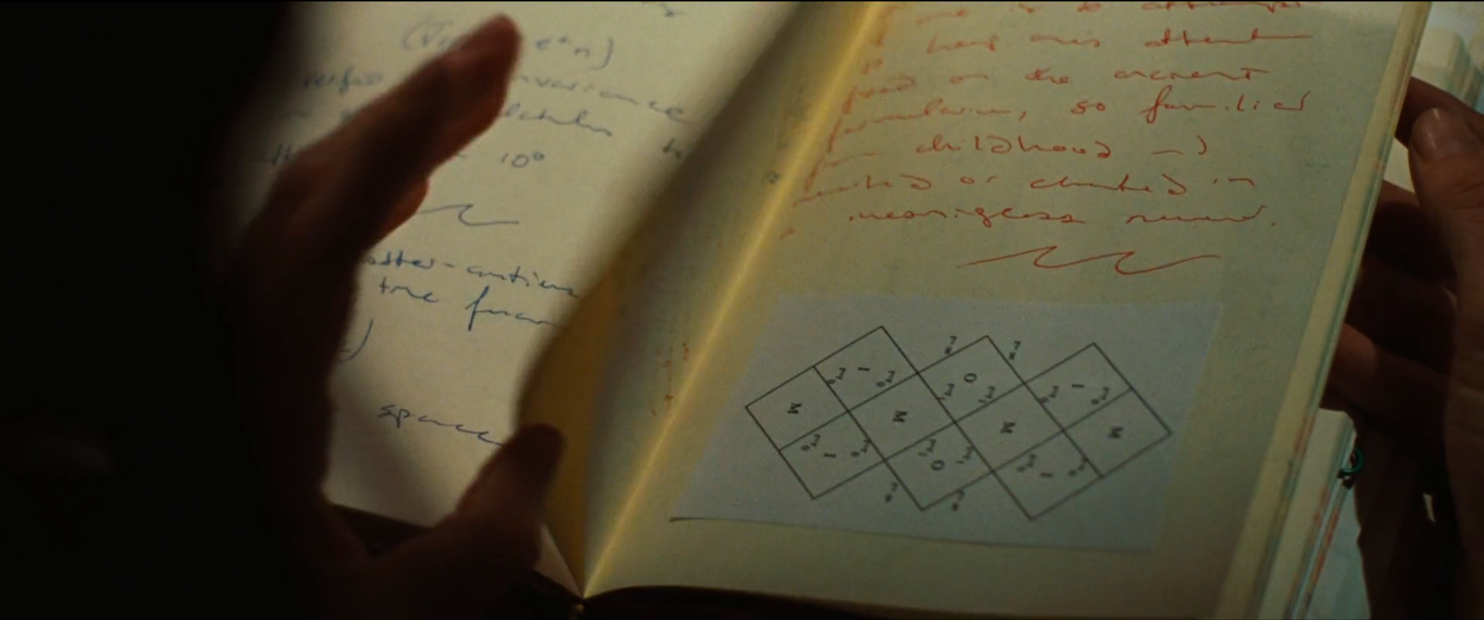There are some math notebook pages appearing in this movie. The Dan Brown book for the movie had been