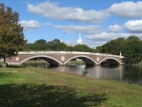 | Train or trolley lines could use existing streets or existing bridges. A futuristic cable-car solution has the advantage to be completely decoupled from the street traffic. Also a monorail solution could be constructed above the current car lanes. Special bicycle paths could be implemented right away. For bikers, it is important that they do not have to cross big streets, nor pass close to parked cars. Bicycle paths along existing streets are dangerous. A bicycle bridge over Memorial drive would be a first step. Alternatively, Memorial drive could be lowered into the ground near Harvard campus. |