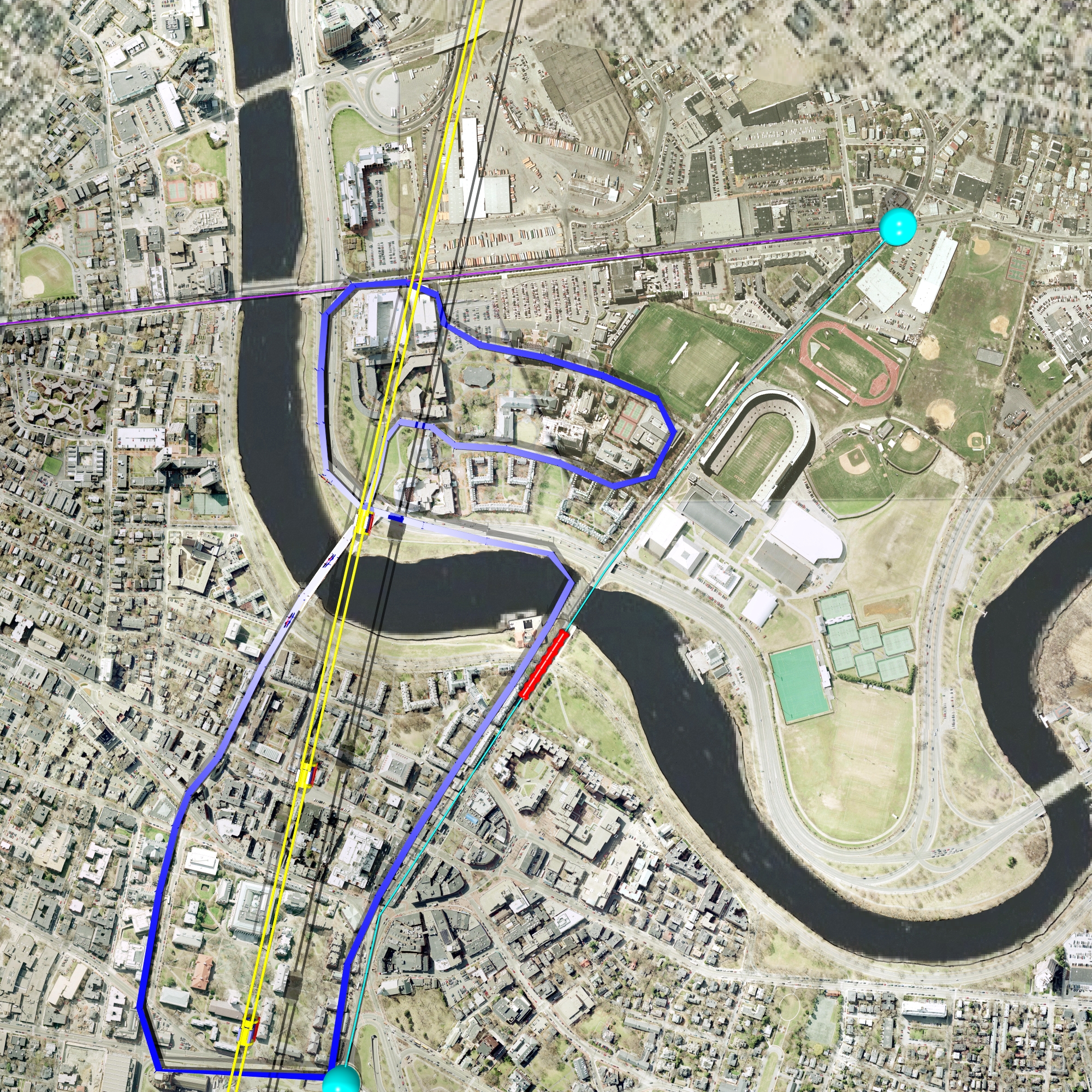| A non-conventional solution to the connectivity problem between Cambridge and Allston is not cheap. On the other hand, anything which can save time is worth the effort. If a fraction of students and faculties can save time to commute near the Campus, these hours save thousands of hours of work time every year. An environmentally friendly campus is attractive for faculty, staff and students. A campus relieved from traffic would become a model for other places. Part of the maintainance costs could be obtained from tourist tickets sold for the ride. The ride would be free for Harvard community. Tourists and visitors would have to pay a small fee. Especially a cable-car solution would attract visitors. Coffee shops and tourist shops at Cambridge and Allston could help financing the construction and maintainence costs. |