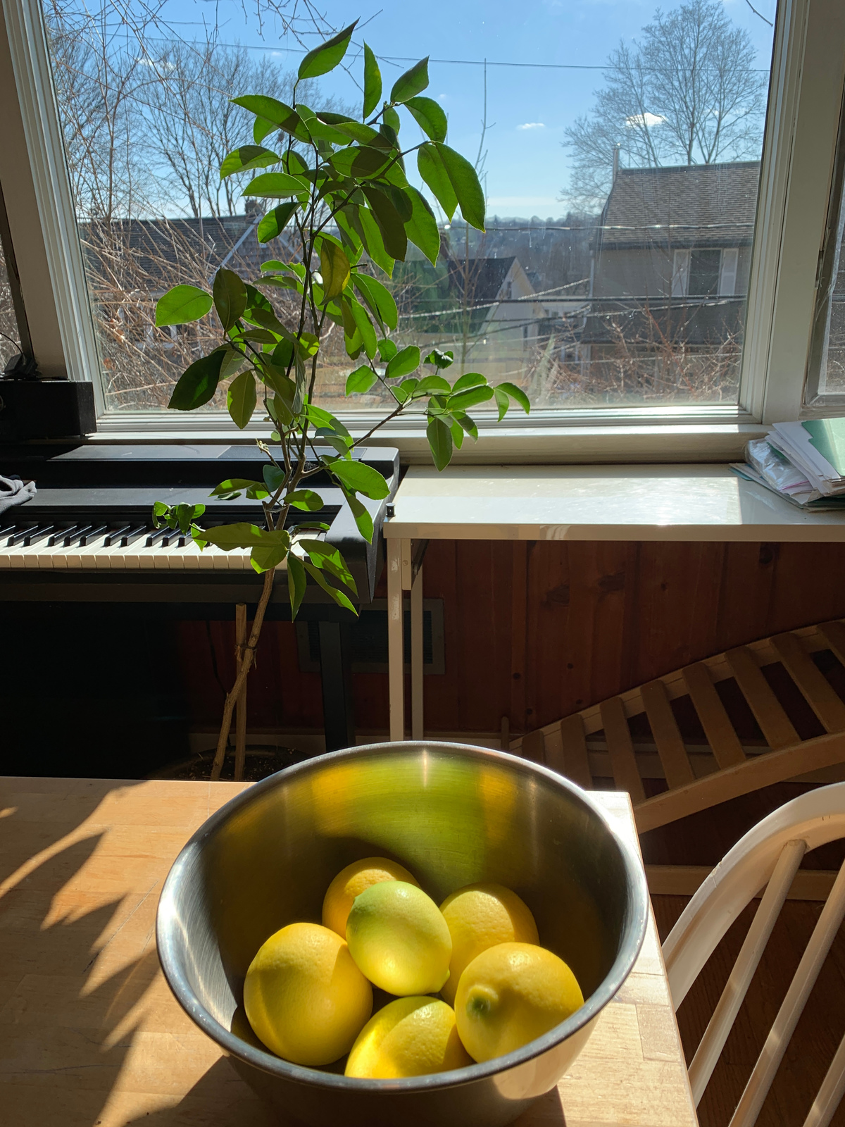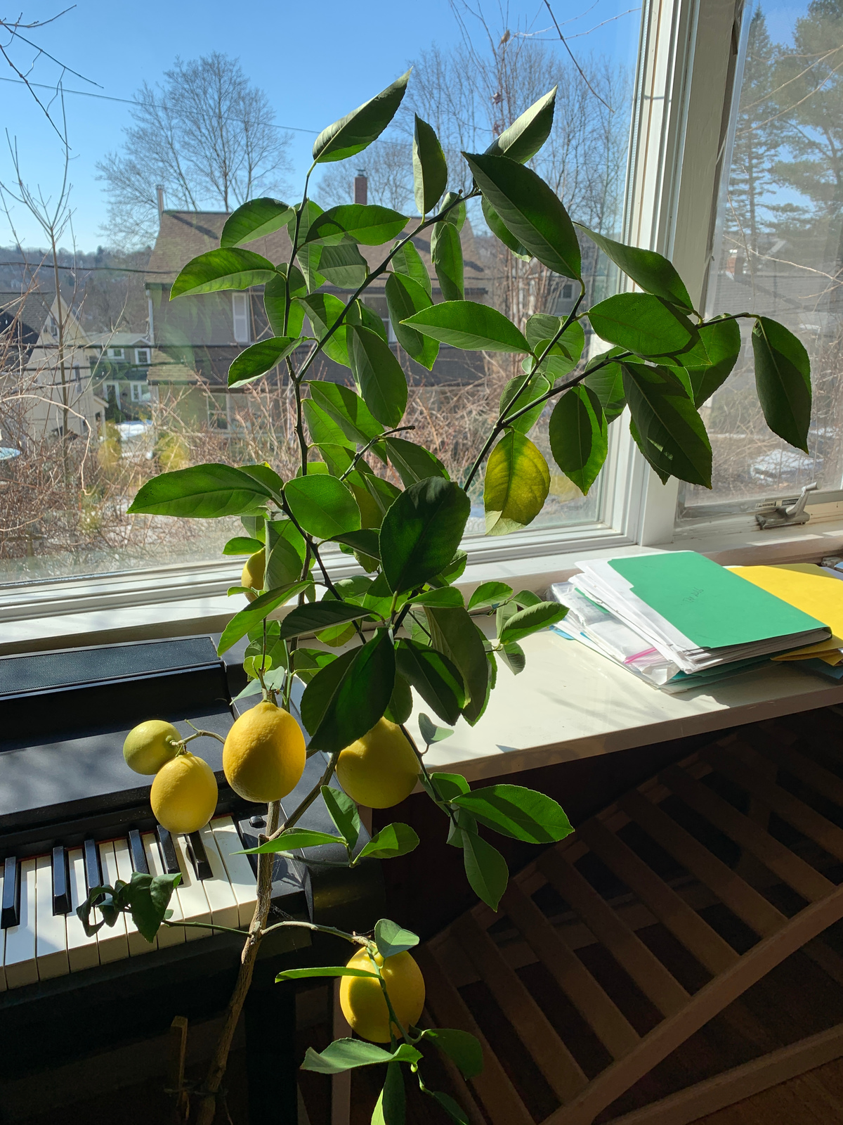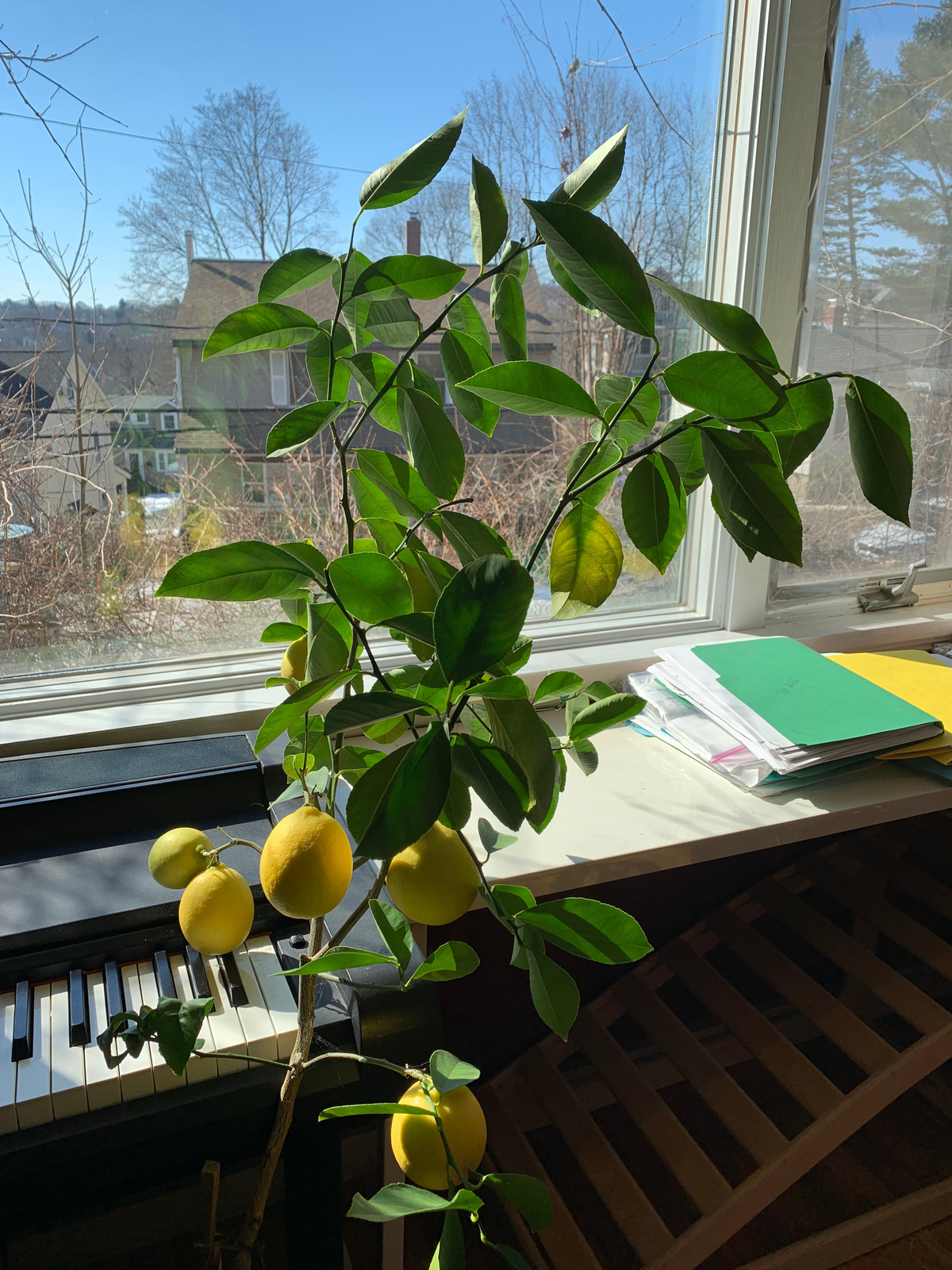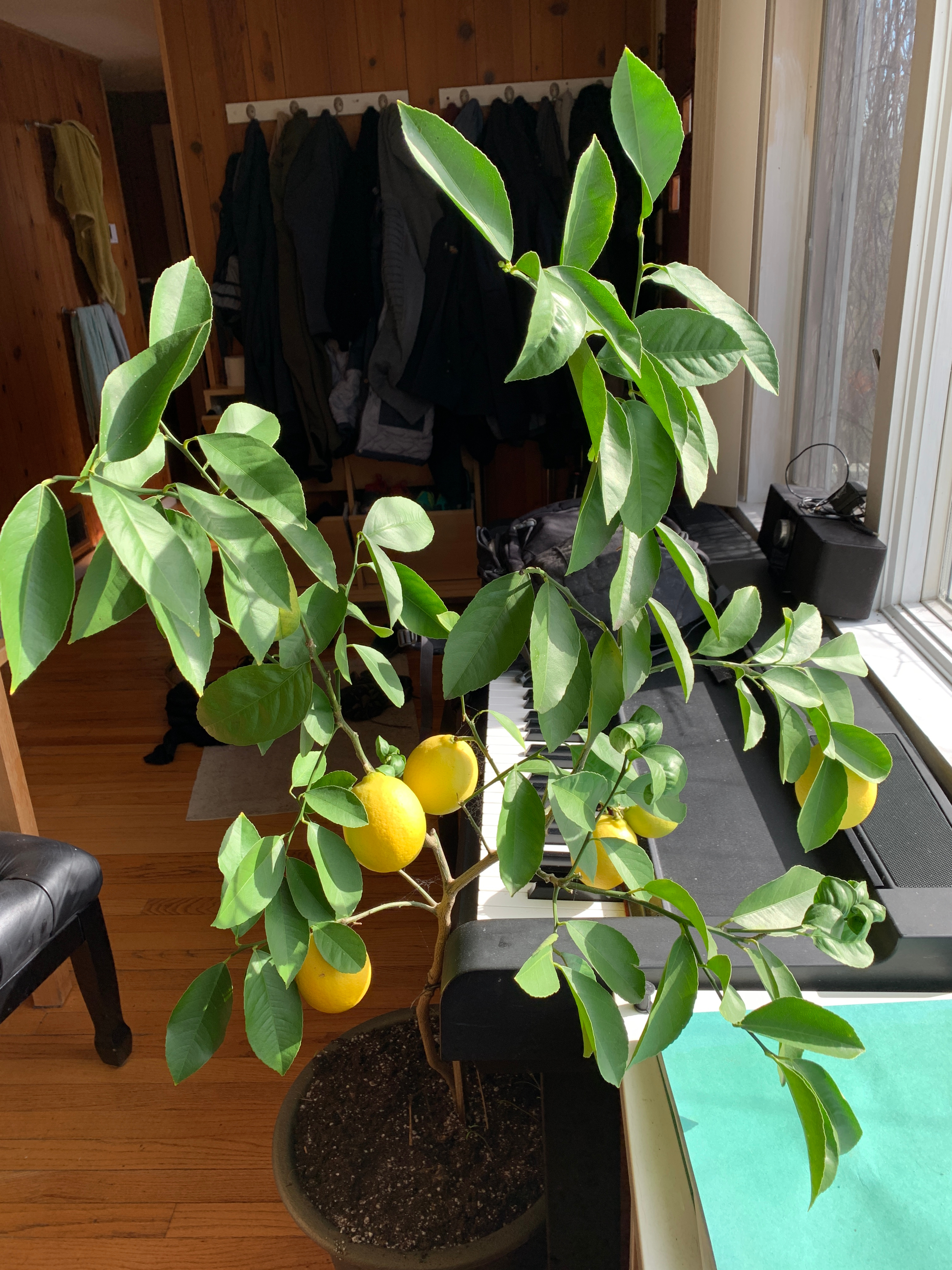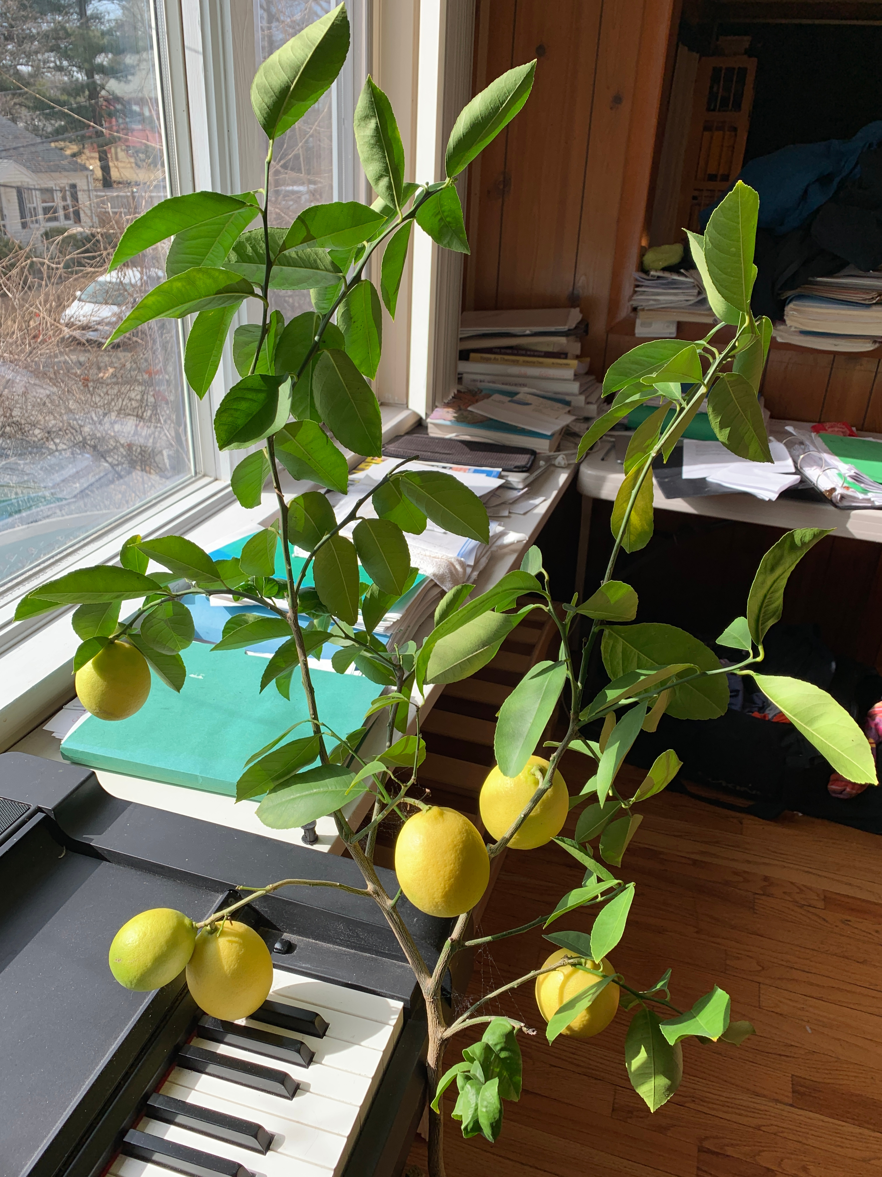 Our lemon tree produced some wonderful fruits. As there are no bees inside the house, we have have done it with some toothbrush ... So much about lemon tree sex. Click for a larger picture.