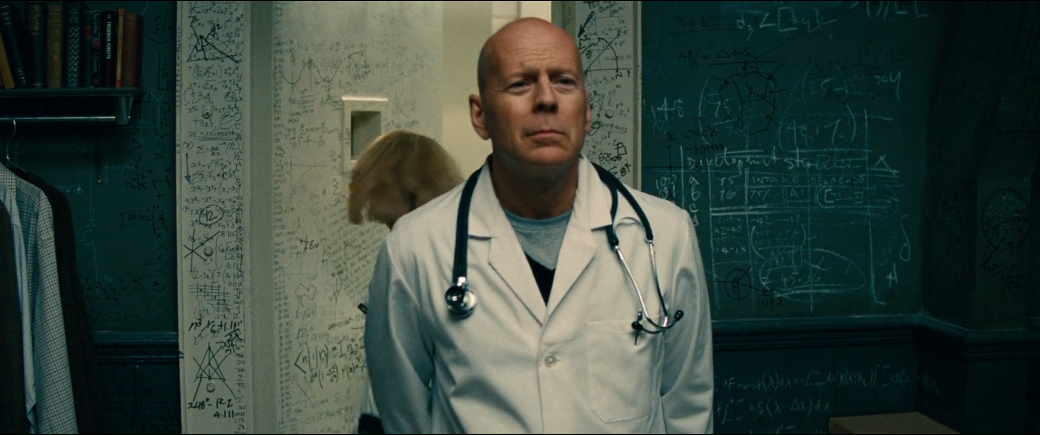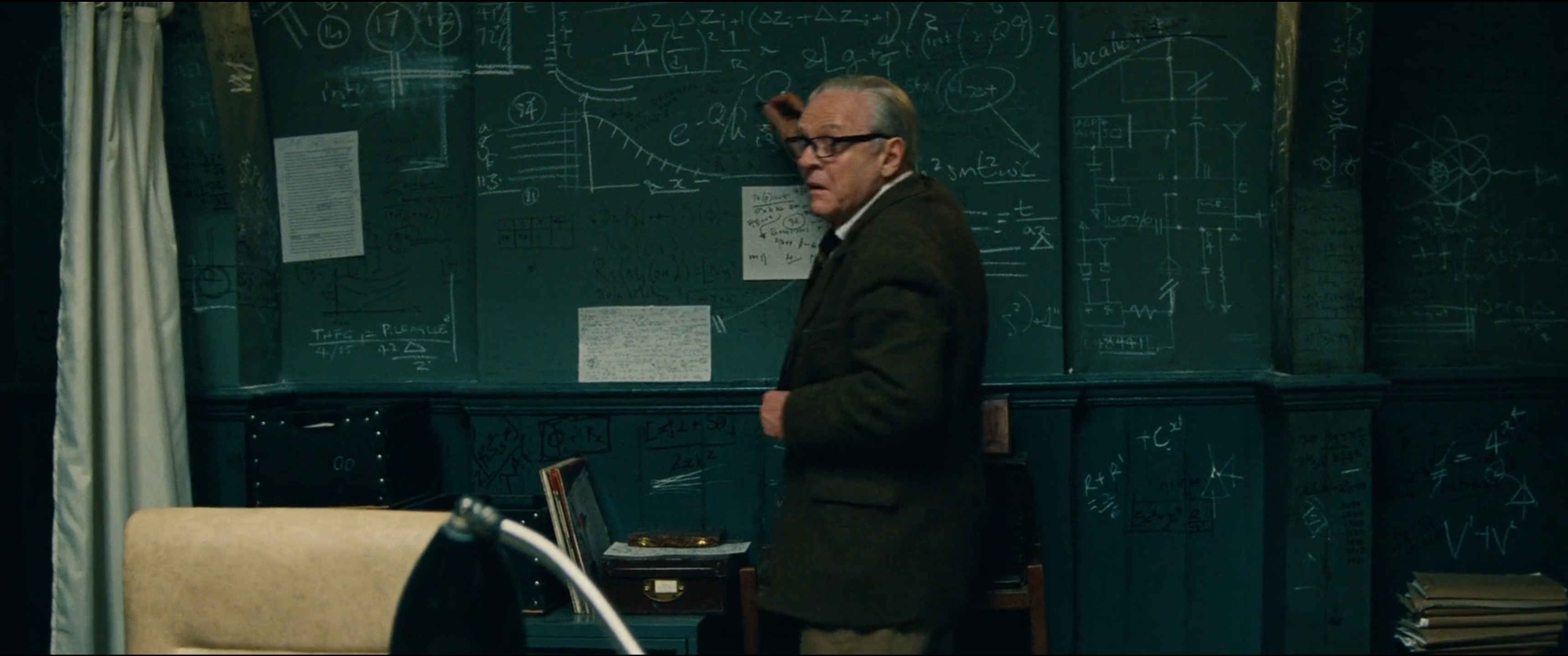 visit Anthony Hopkins, a mad scientist. We can see lots formula like the Maxwell equations