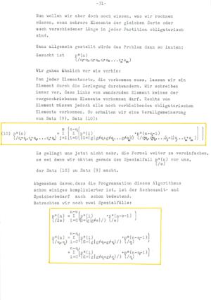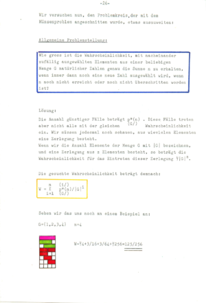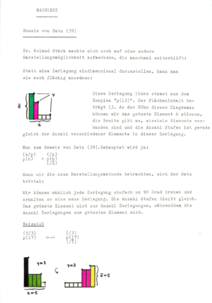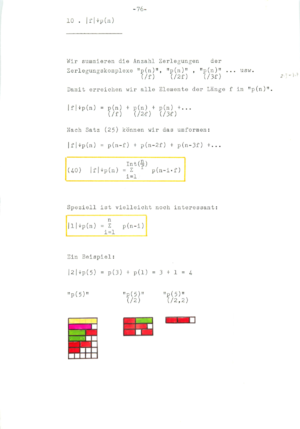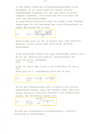 ![]() Discussion with Dr. Hans Giger, 1981, who was an excellent referee at the national competition. (He understood the topic even so his overall assessment was a bit too harsh as I would say now from a distance as there are still results in that work which I could not find yet anywhere, especially relations like generalizations of the beautiful formula (50) page 84). For the experimentally discovered Pentagonal number theorem (I only learned later that Euler did that already), I definitely lacked the technique to prove it. (That I missed generating functions later shocked me). Hans Giger was a student of Willy Scherrer and published also with Hugo Hadwiger. Click on the above picture to see it large. Right: two pages from a publication "50 Jahre Schweizer Jugend Forscht" [PDF], published in April, 2017. |