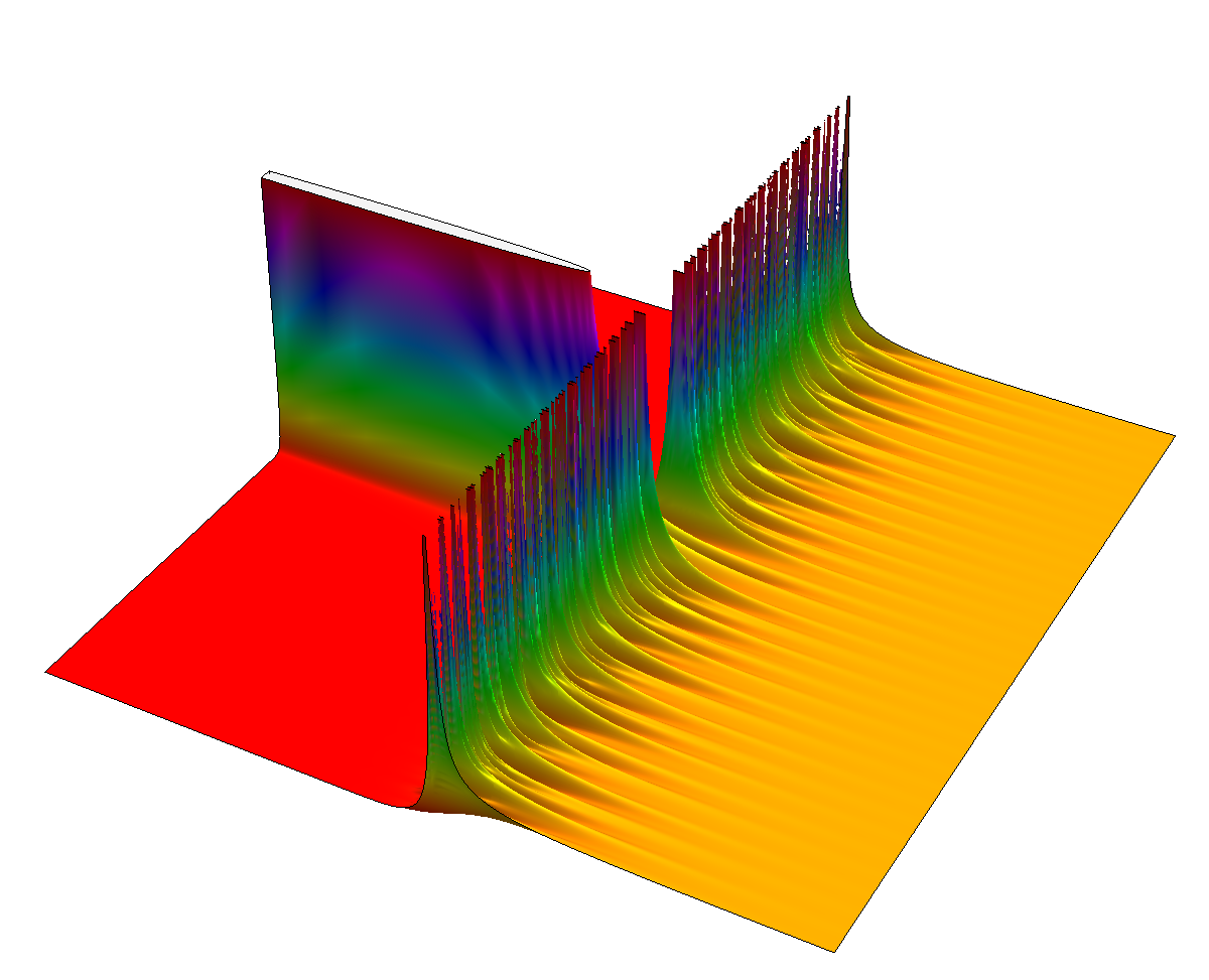 The video shows some flight simulator shots with a slalom around the roots of the zeta function. (Higher quality Quicktime or low resolution Webm,Ogg) Music "Fading like a flower" by Roxette 1991. |